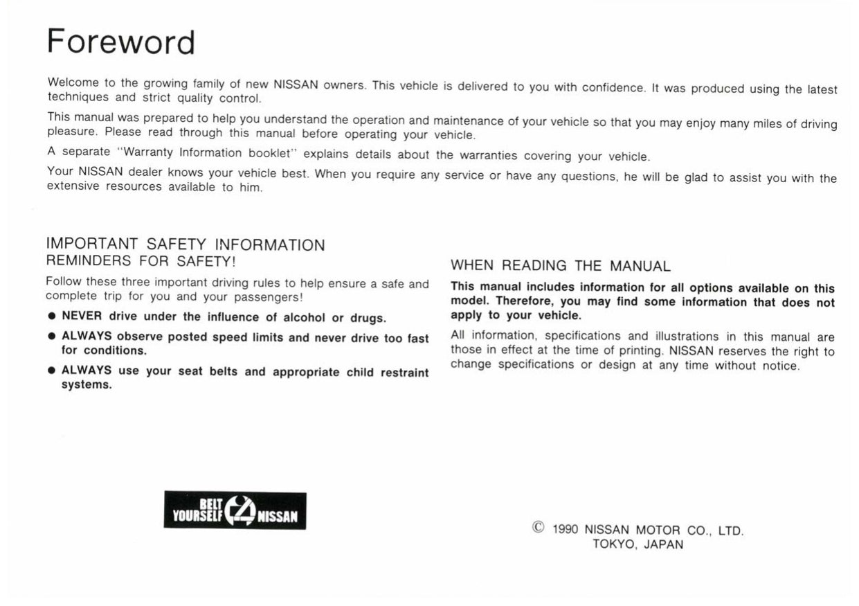 1991 Nissan 300ZX Bedienungsanleitung | Englisch