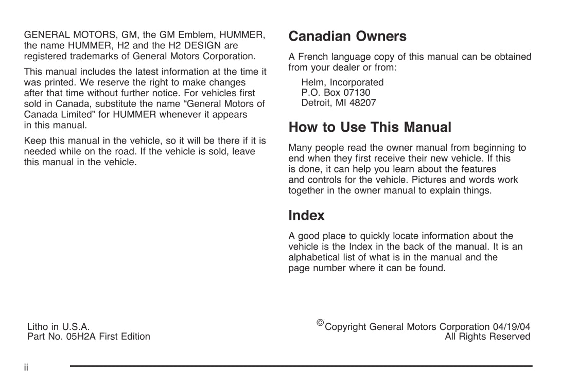 2005 Hummer H2 Bedienungsanleitung | Englisch