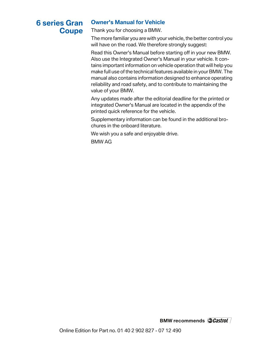 2013 BMW 6 Series Gran Coupé Bedienungsanleitung | Englisch