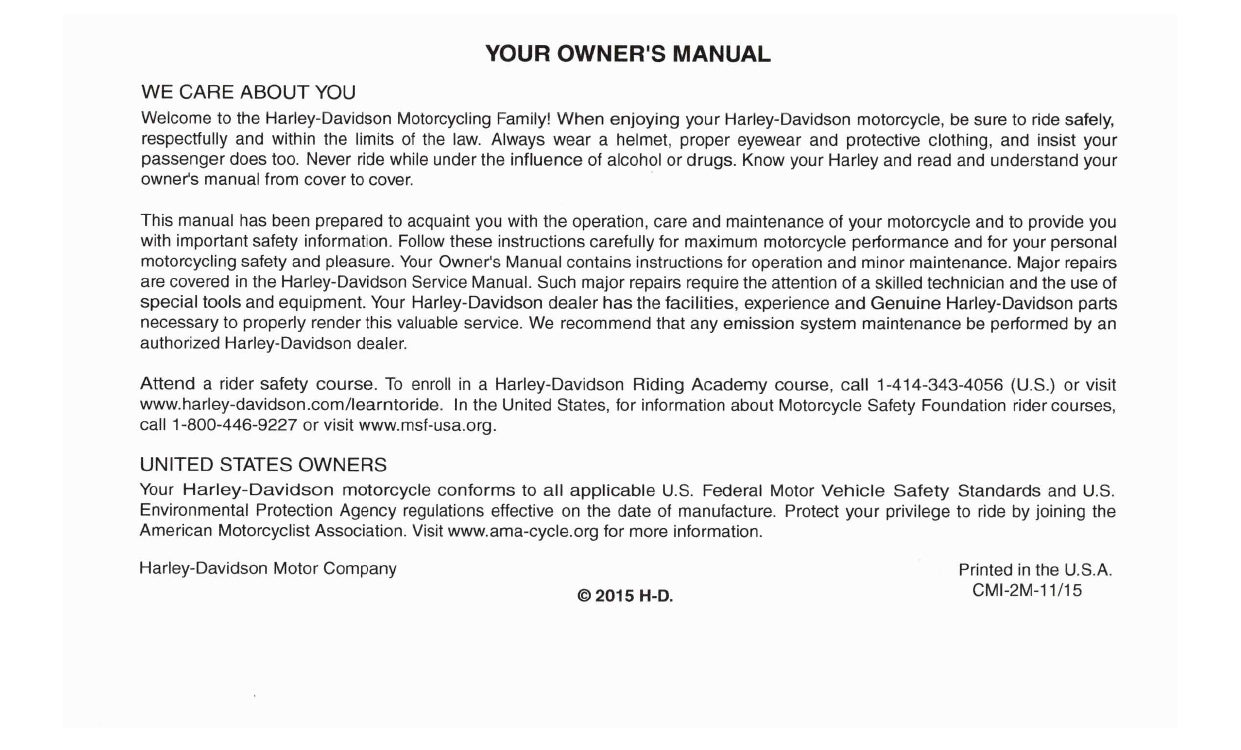 2016 Harley-Davidson FXSE Bedienungsanleitung | Englisch