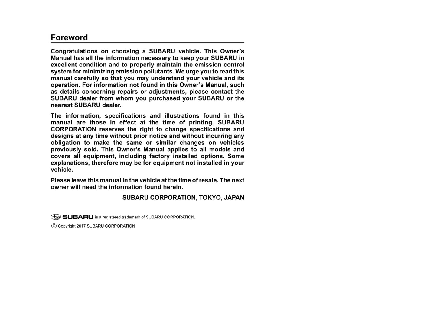 2017 Subaru Crosstrek Bedienungsanleitung | Englisch