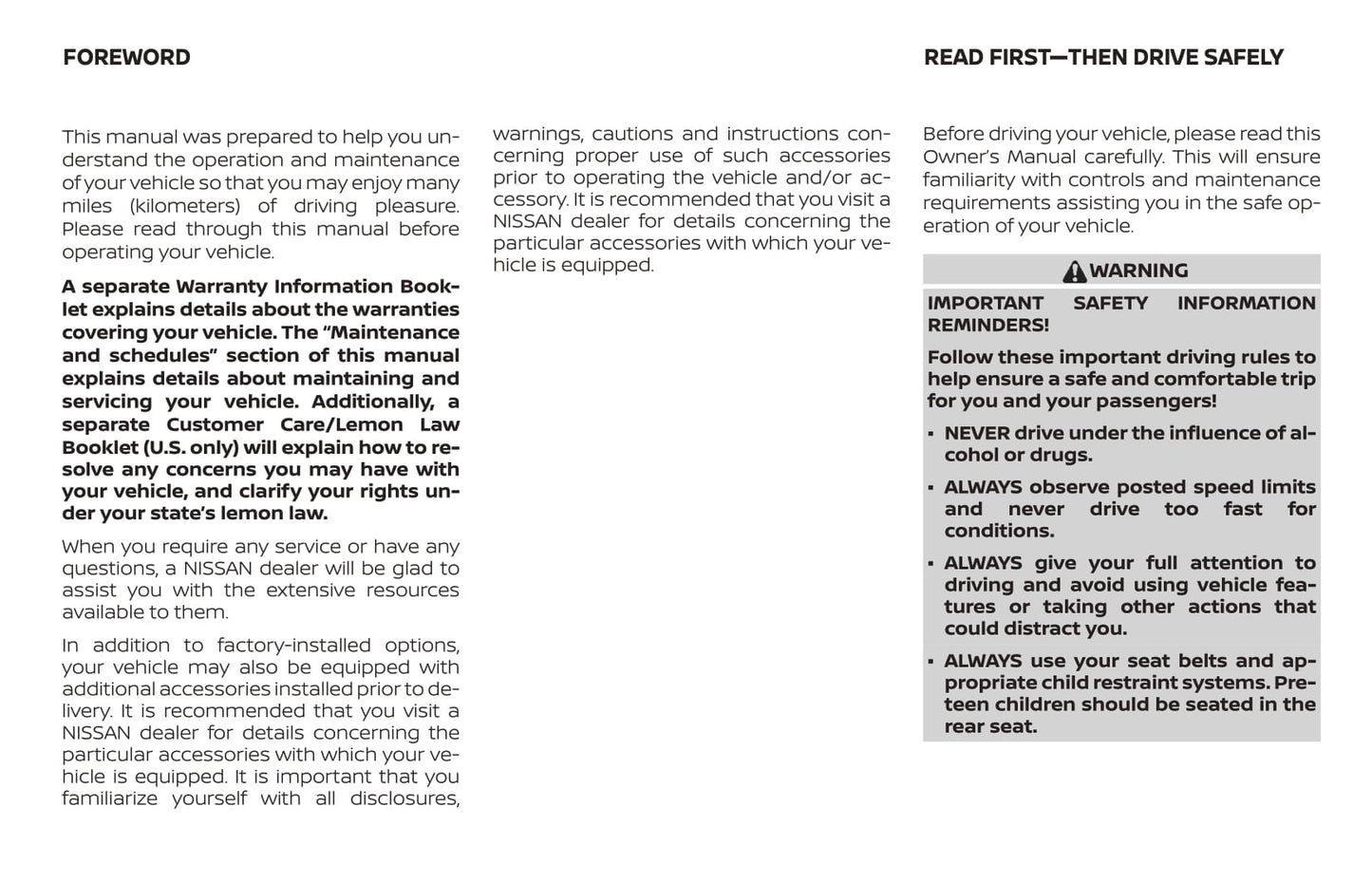 2020 Nissan Altima Sedan Bedienungsanleitung | Englisch