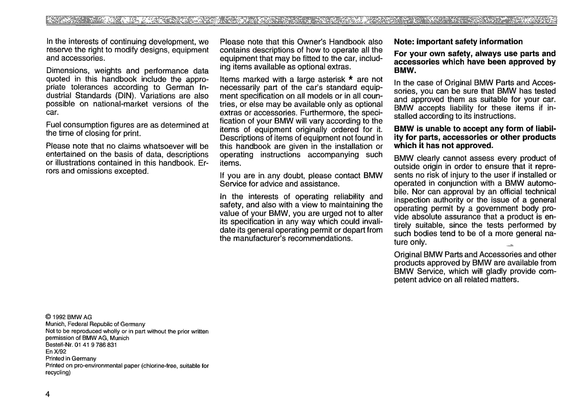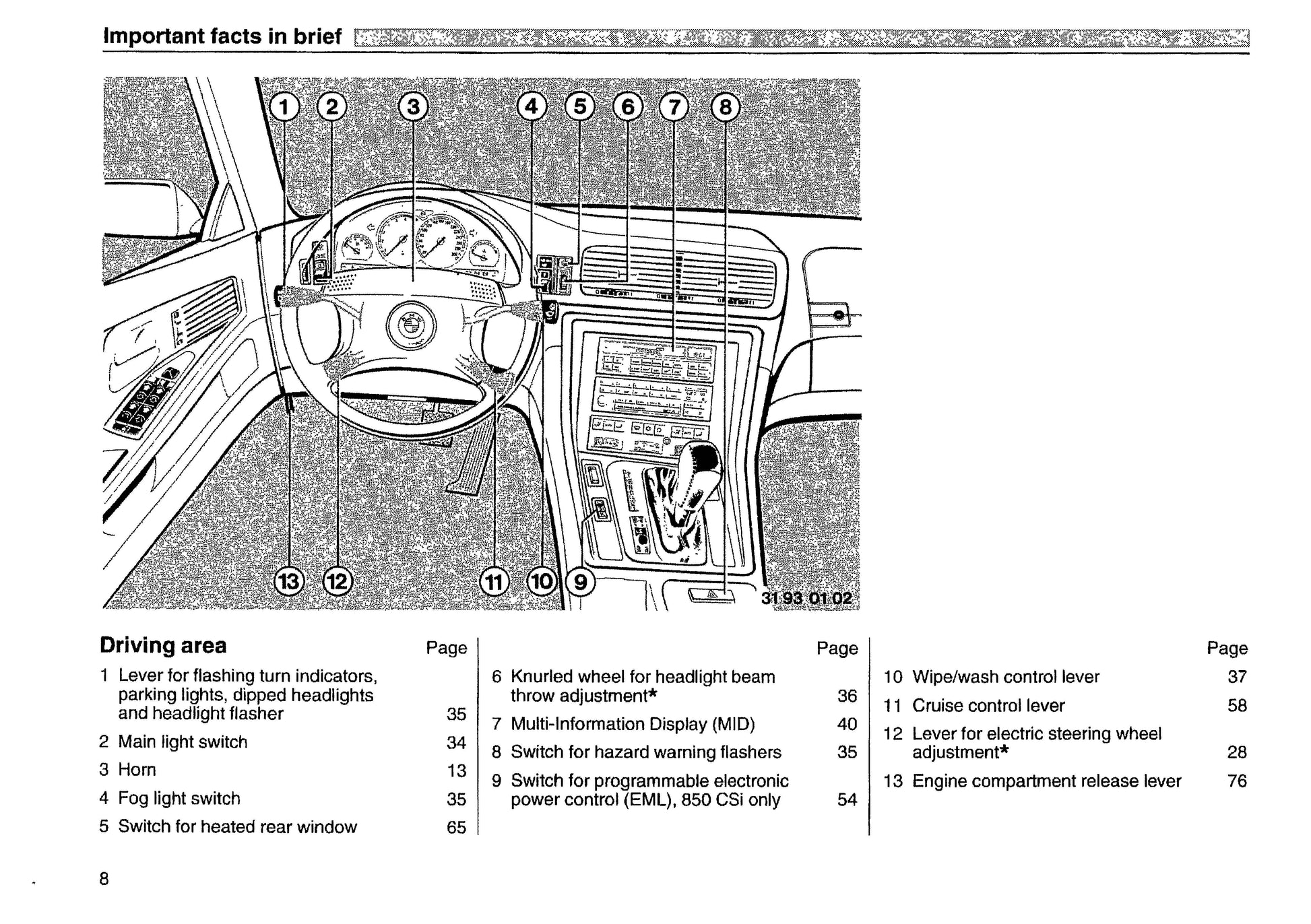 1991 BMW 8 Series Owner's Manual | English