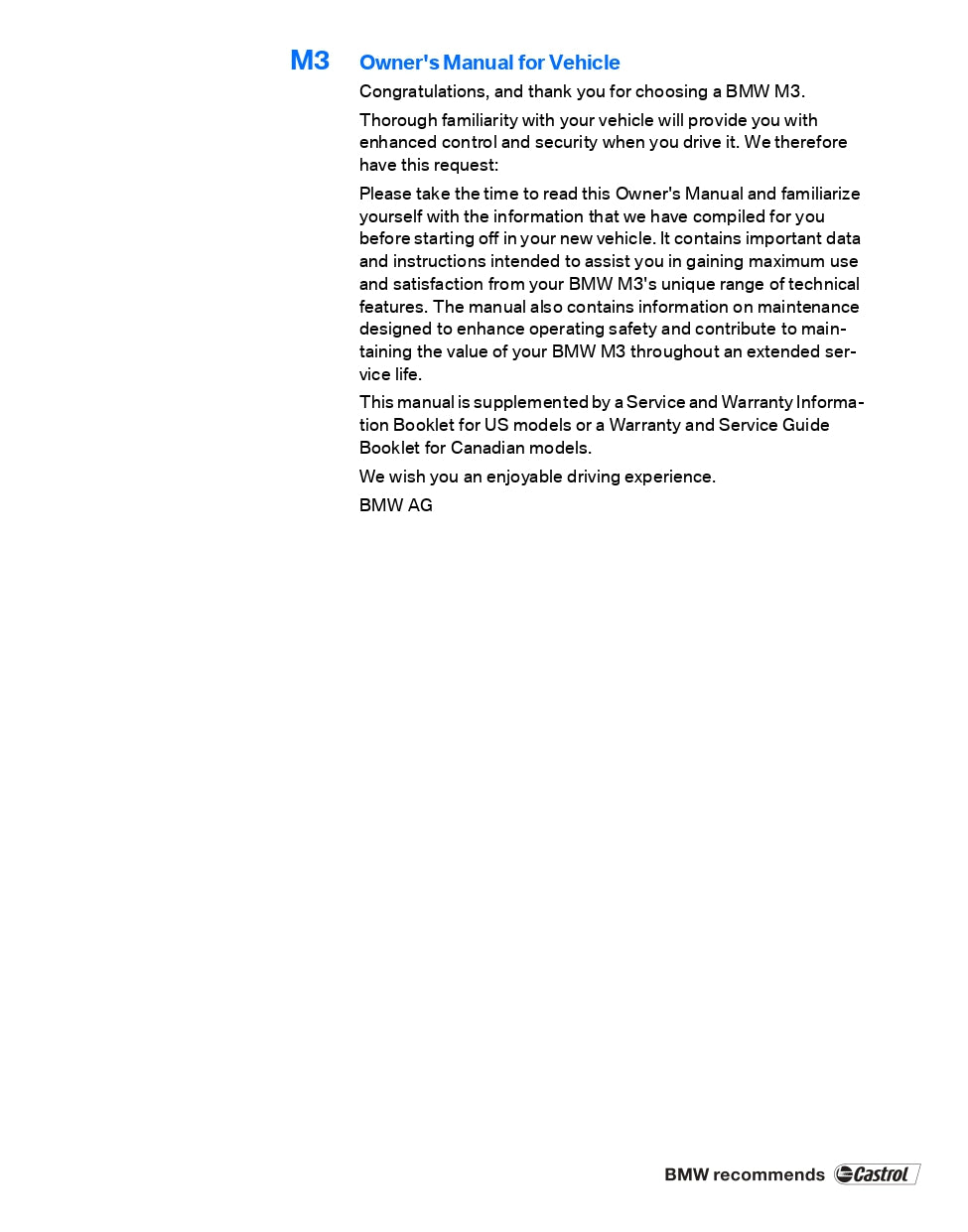 2008 BMW M3 Owner's Manual | English
