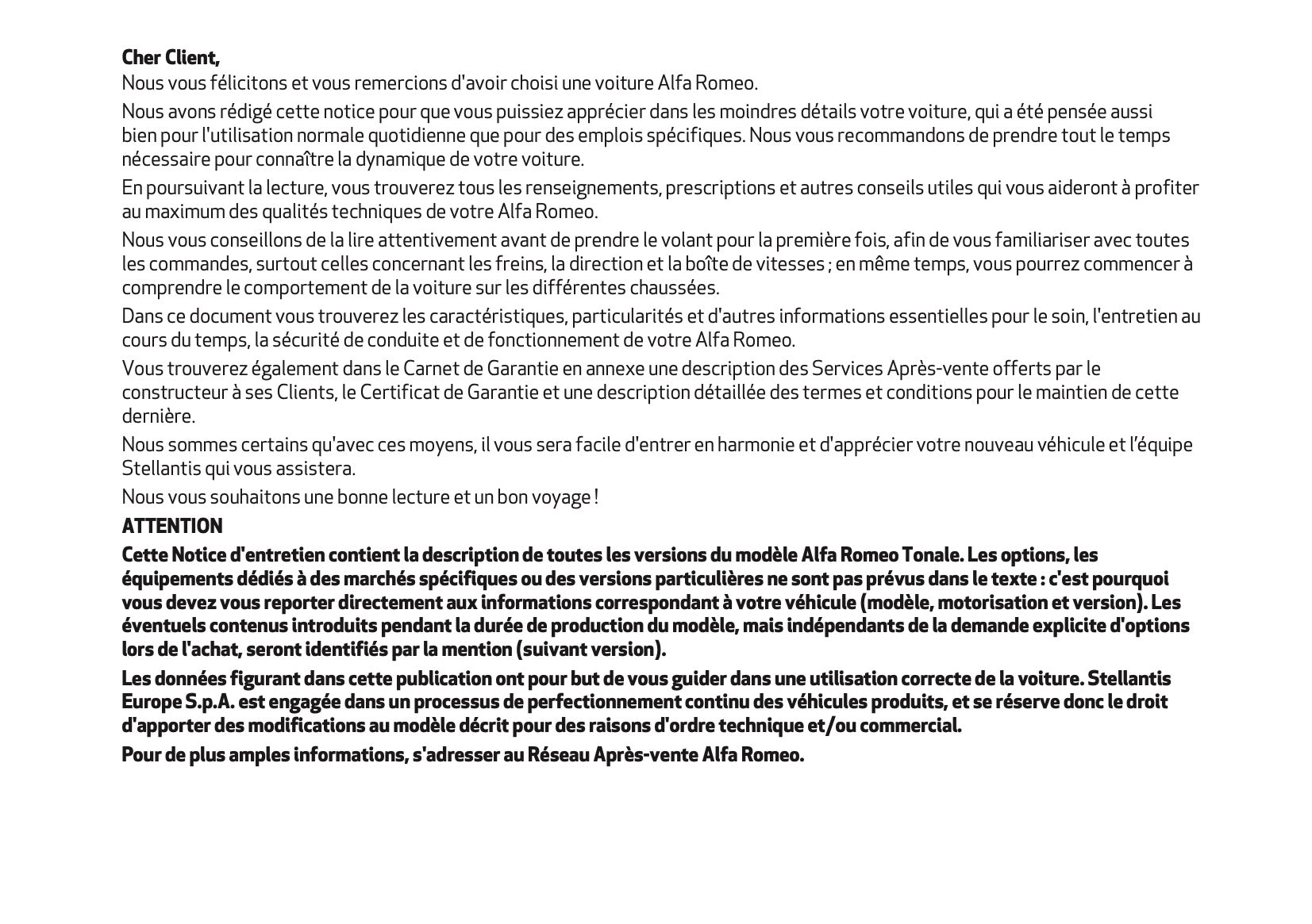 2024-2025 Alfa Romeo Tonale Owner's Manual | French