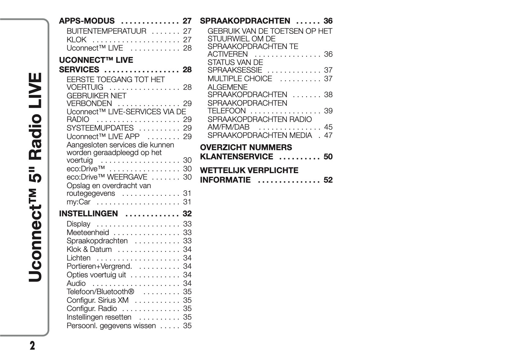 Deze 56 pagina's tellende Nederlandstalige infotainment handleiding, op aanvraag afgedrukt, biedt uitgebreide instructies voor uw Abarth 500/595/695 Uconnect 50 Radio.