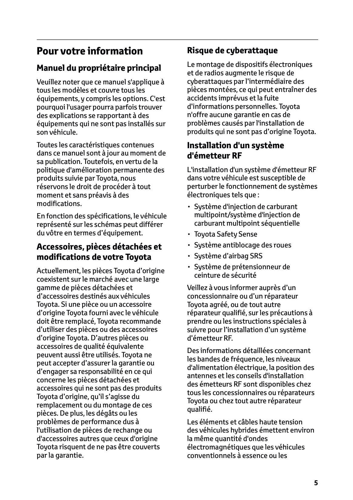 Ce manuel de voiture de 604 pages en français, imprimé sur demande, fournit des instructions complètes pour votre véhicule Toyota Corolla Hybrid Hatchback/Touring Sports.