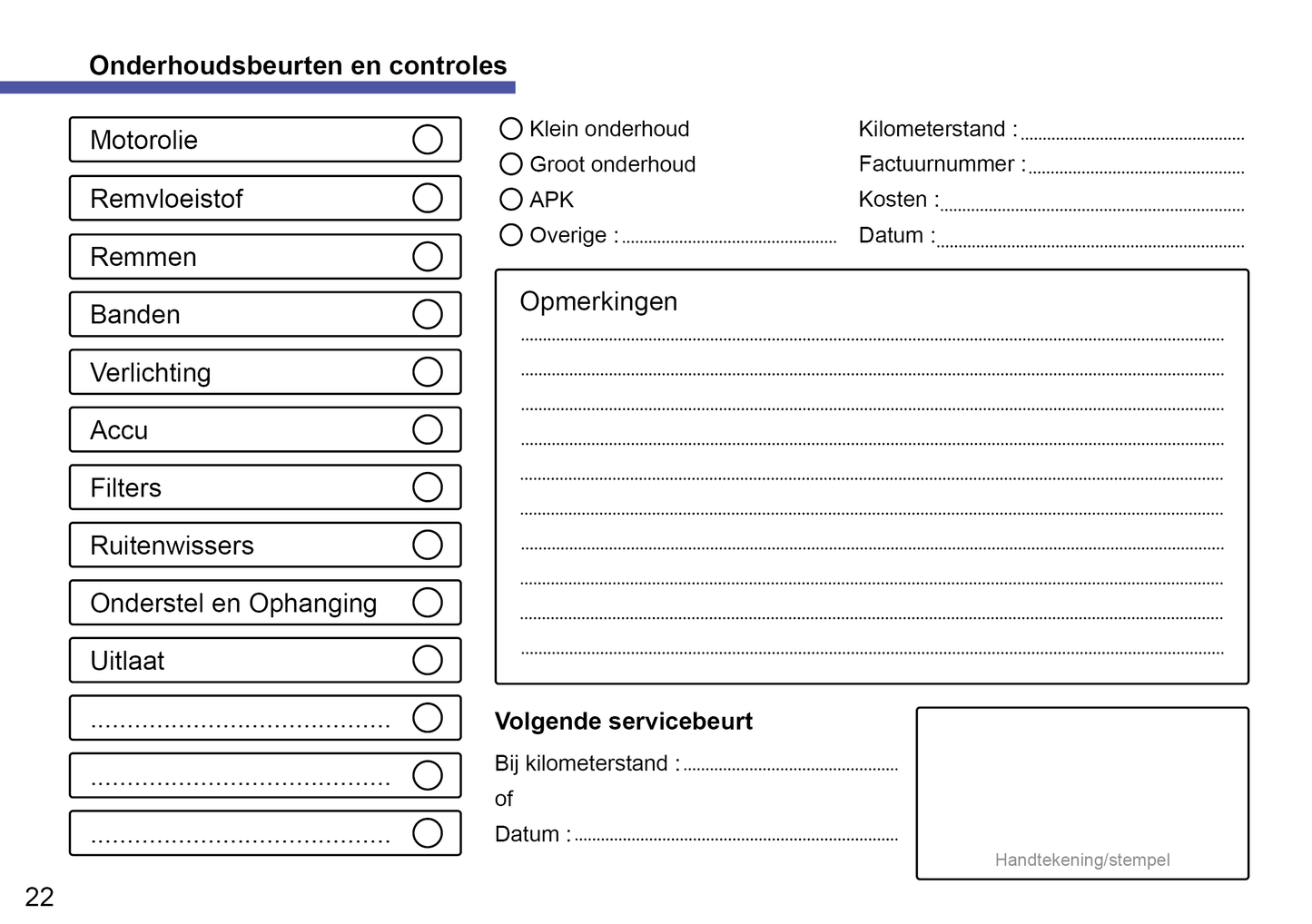 Dit onderhoudsboekje is geschikt voor alle Volkswagen-modellen, ongeacht bouwjaar of type. Het biedt ruimte om onderhoud, reparaties en belangrijke gegevens bij te houden, inclusief een verklaring van de uitvoerder na elke beurt.