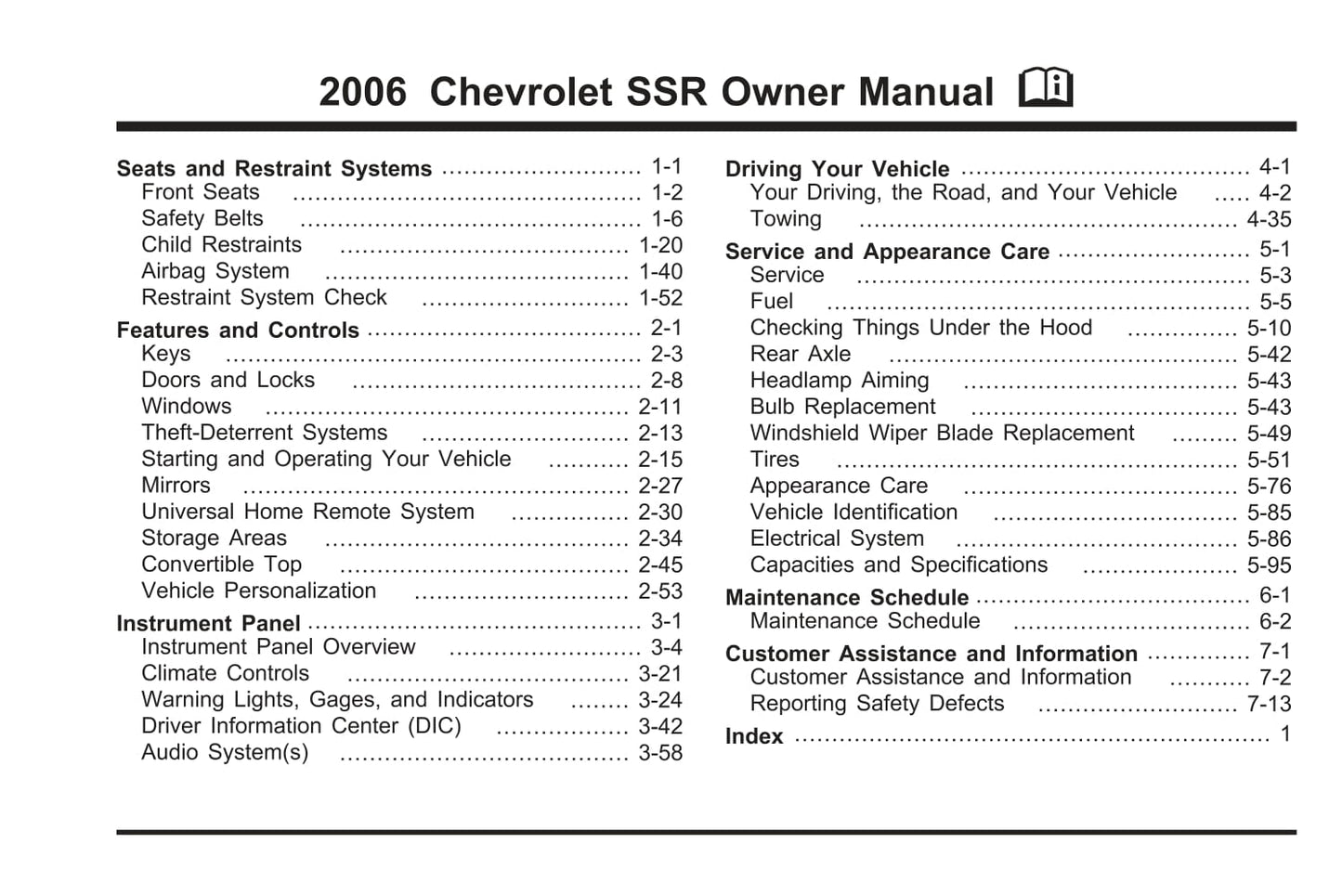 2006 Chevrolet SSR Gebruikershandleiding | Engels