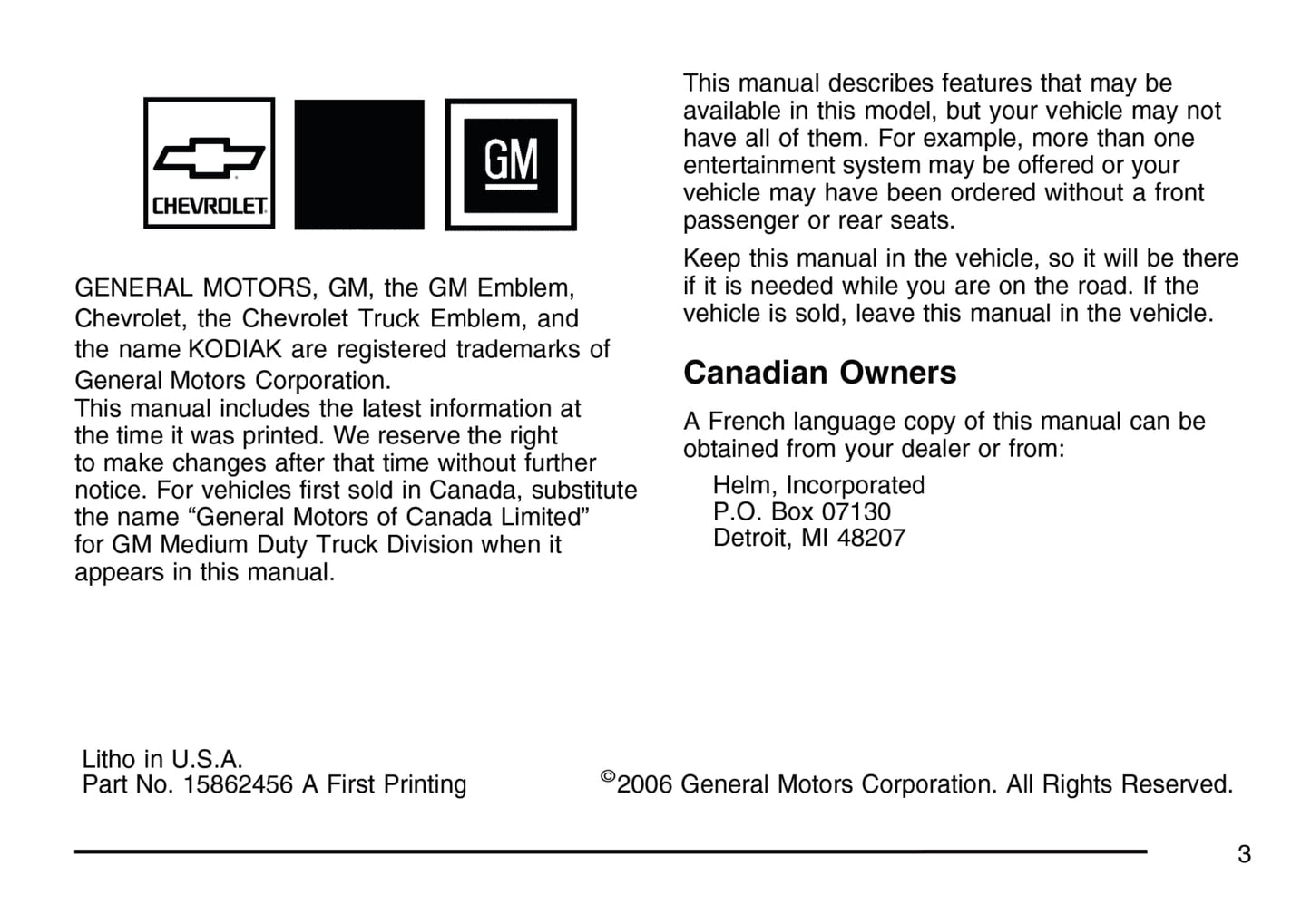 2007 Chevrolet Kodiak Gebruikershandleiding | Engels
