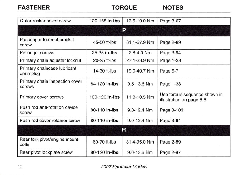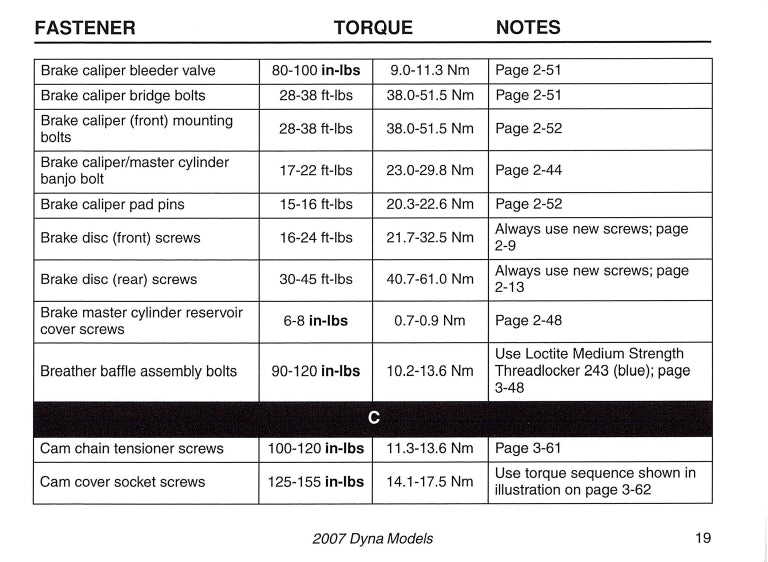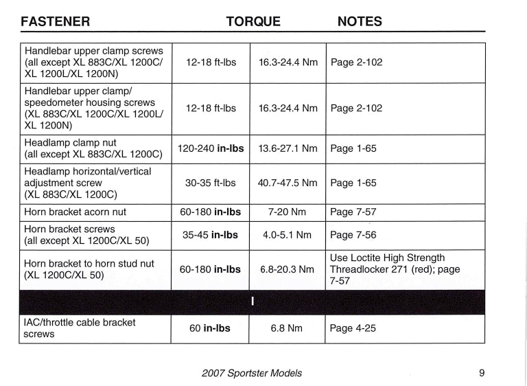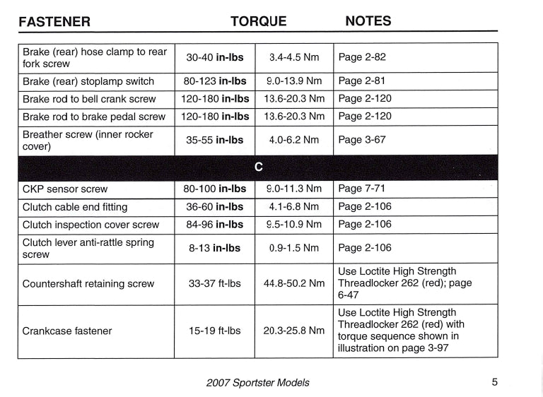 2007 Harley-Davidson Torque Values Manual | English