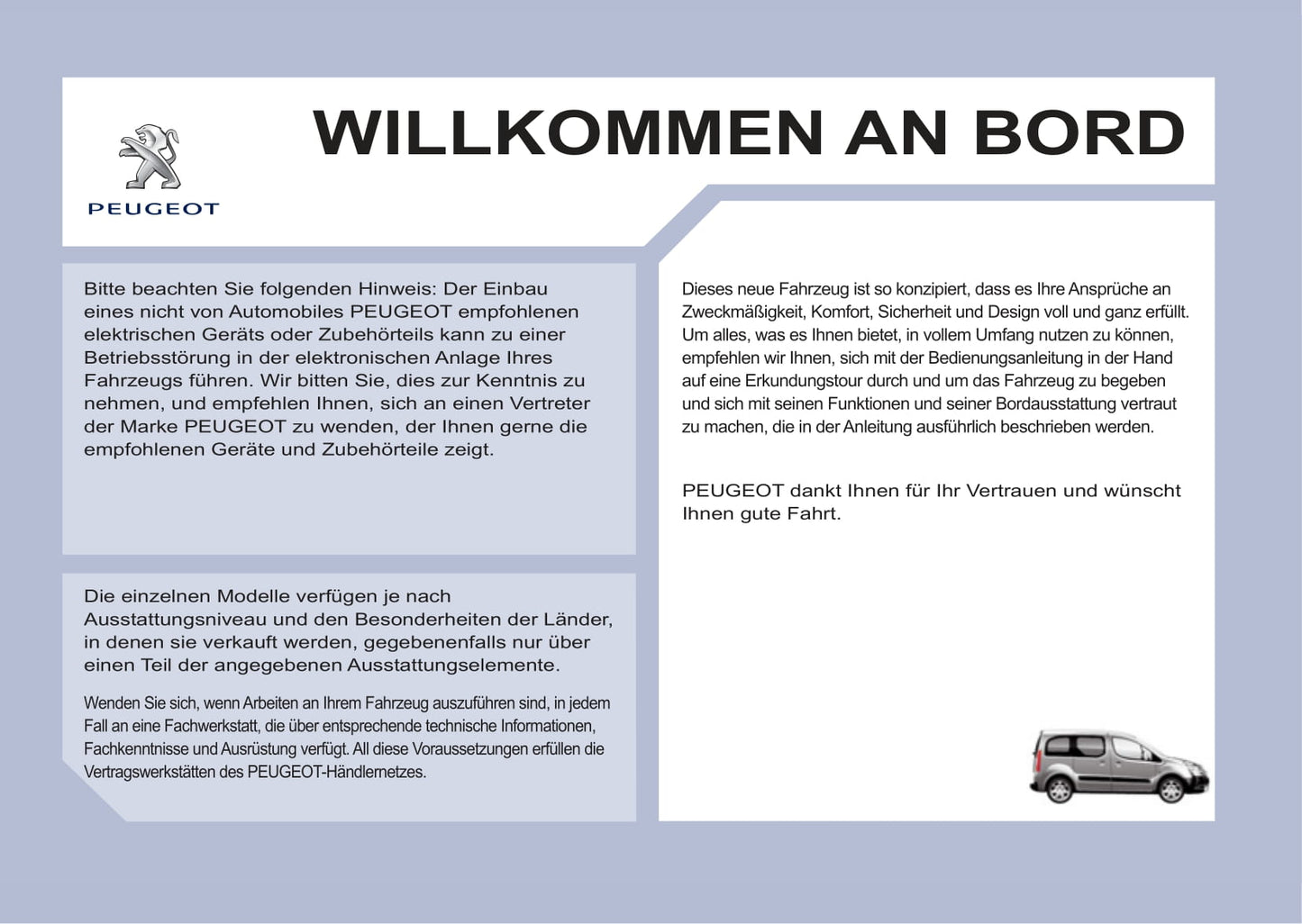 Deze 230 pagina's tellende Duitstalige autohandleiding, op aanvraag gedrukt, biedt uitgebreide instructies voor uw Peugeot-partnervoertuig.
