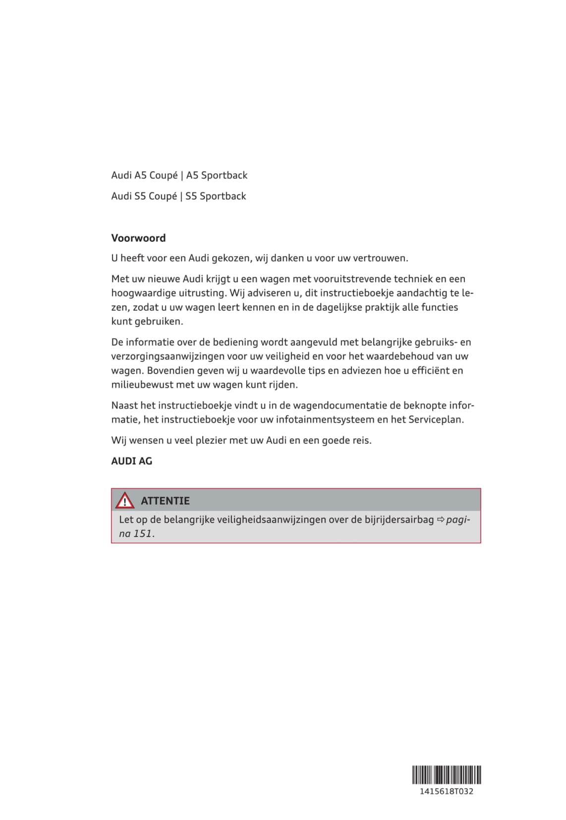 Deze 266 pagina's tellende Nederlandse autohandleiding, op aanvraag gedrukt, biedt uitgebreide instructies voor uw Audi A5/S5-voertuig.