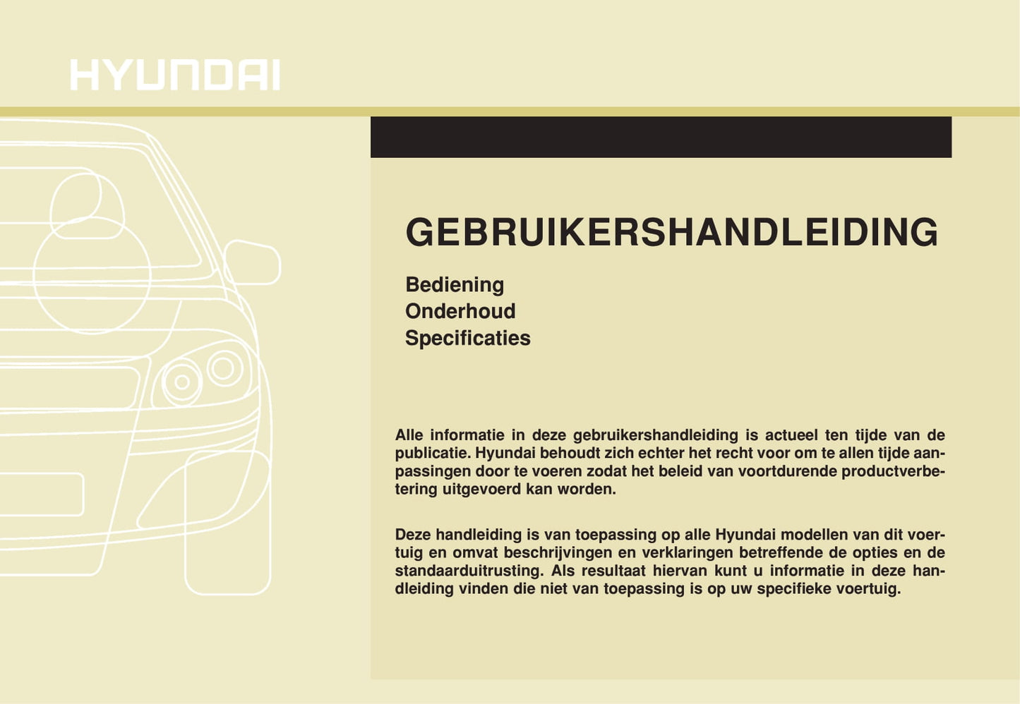 Deze 428 pagina's tellende Nederlandse auto-handleiding, op aanvraag gedrukt, biedt uitgebreide instructies voor uw Hyundai I10-voertuig.