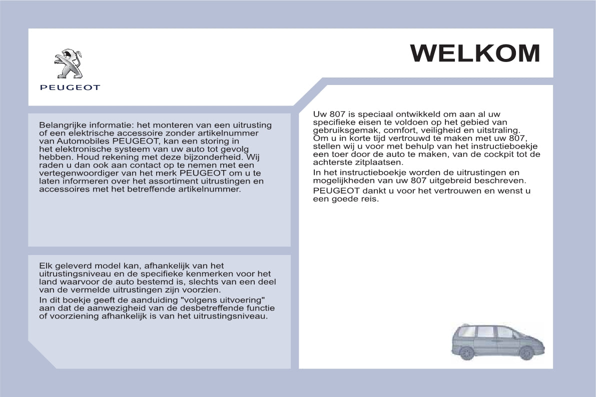 Deze 236 pagina's tellende Nederlandse auto-handleiding, op aanvraag gedrukt, biedt uitgebreide instructies voor uw Peugeot 807-voertuig.
