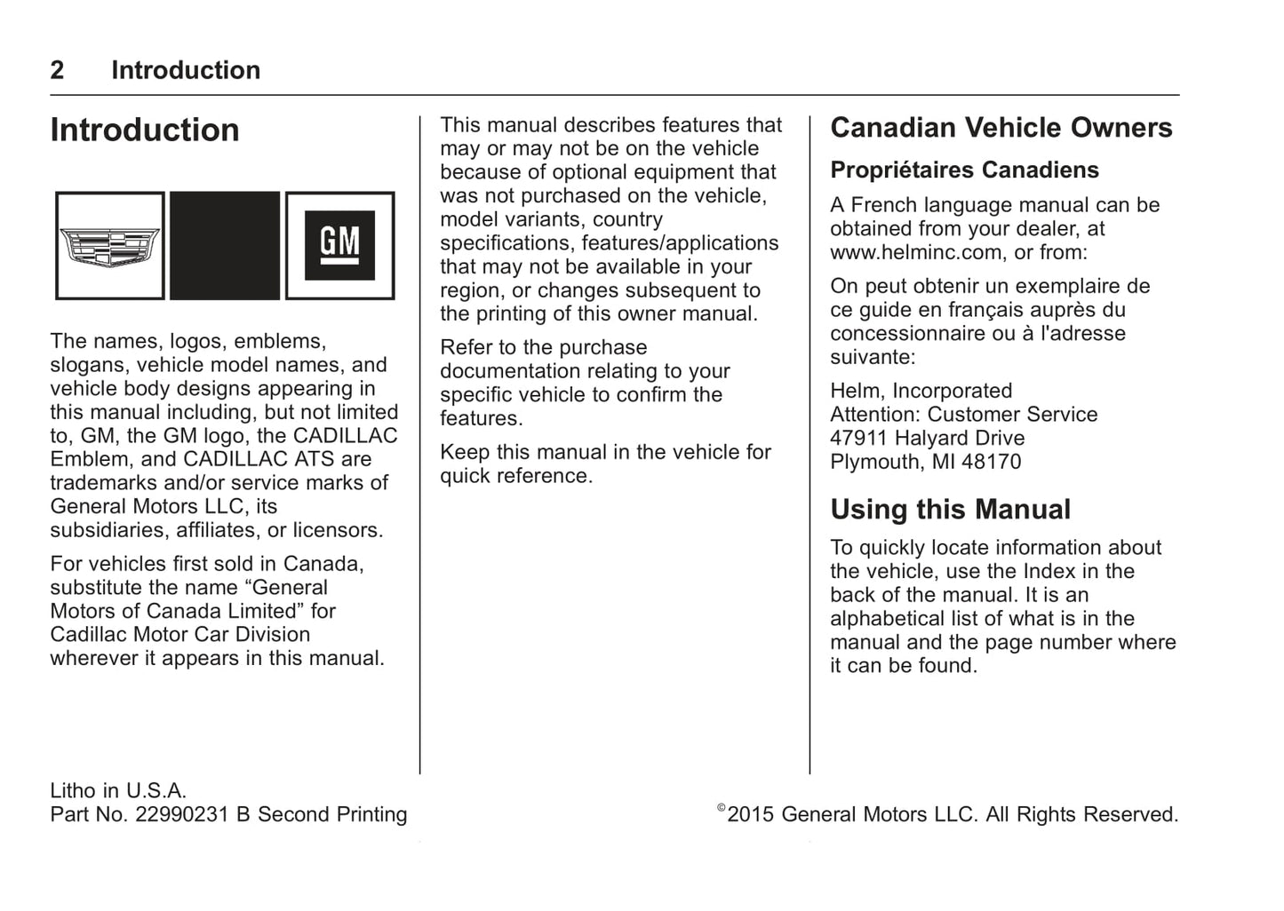 Deze 432 pagina's tellende Engelstalige autohandleiding, op aanvraag gedrukt, biedt uitgebreide instructies voor uw Cadillac ATS/ATS-V-voertuig.