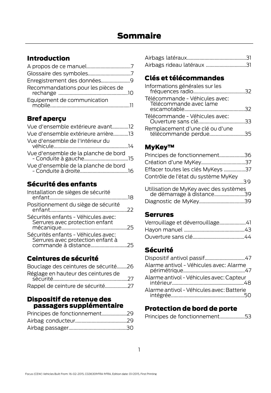 2015 Ford Focus Gebruikershandleiding | Frans