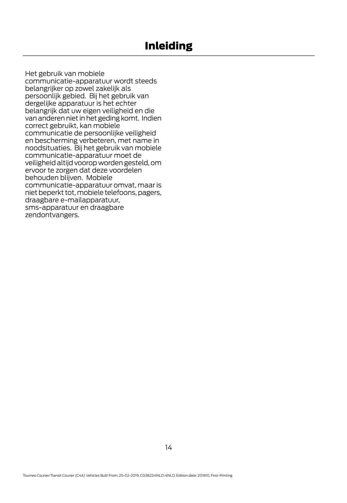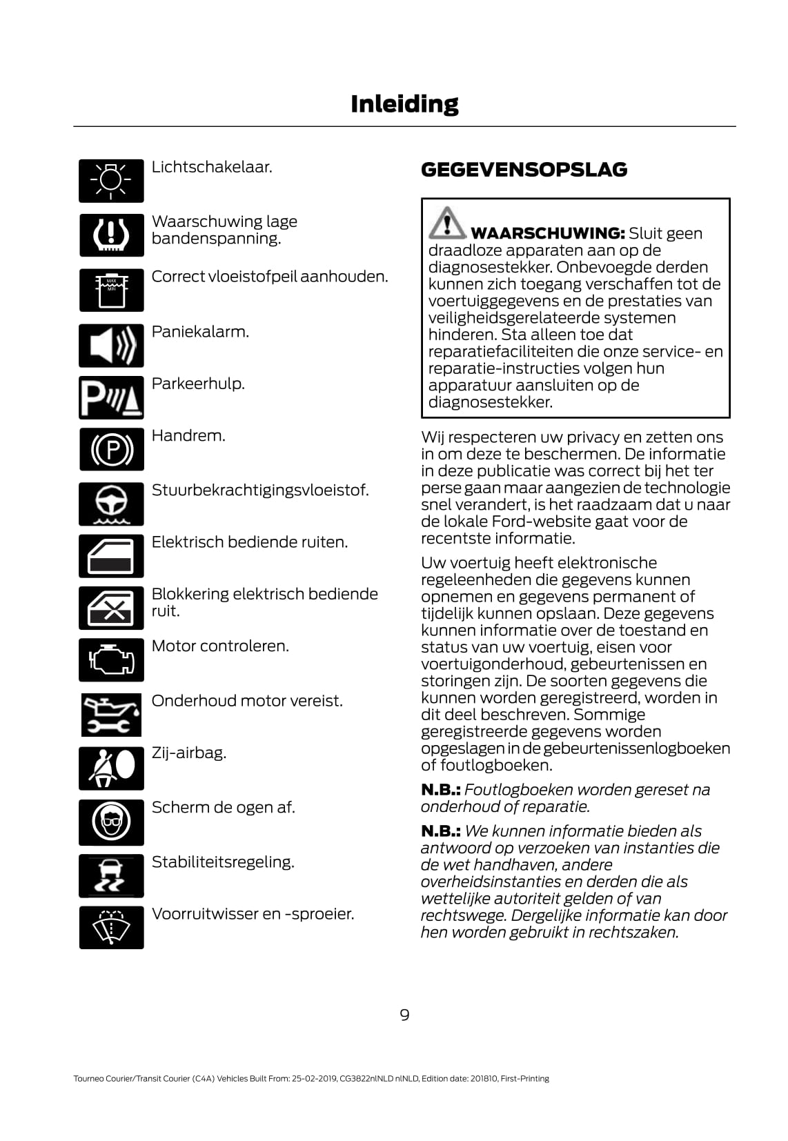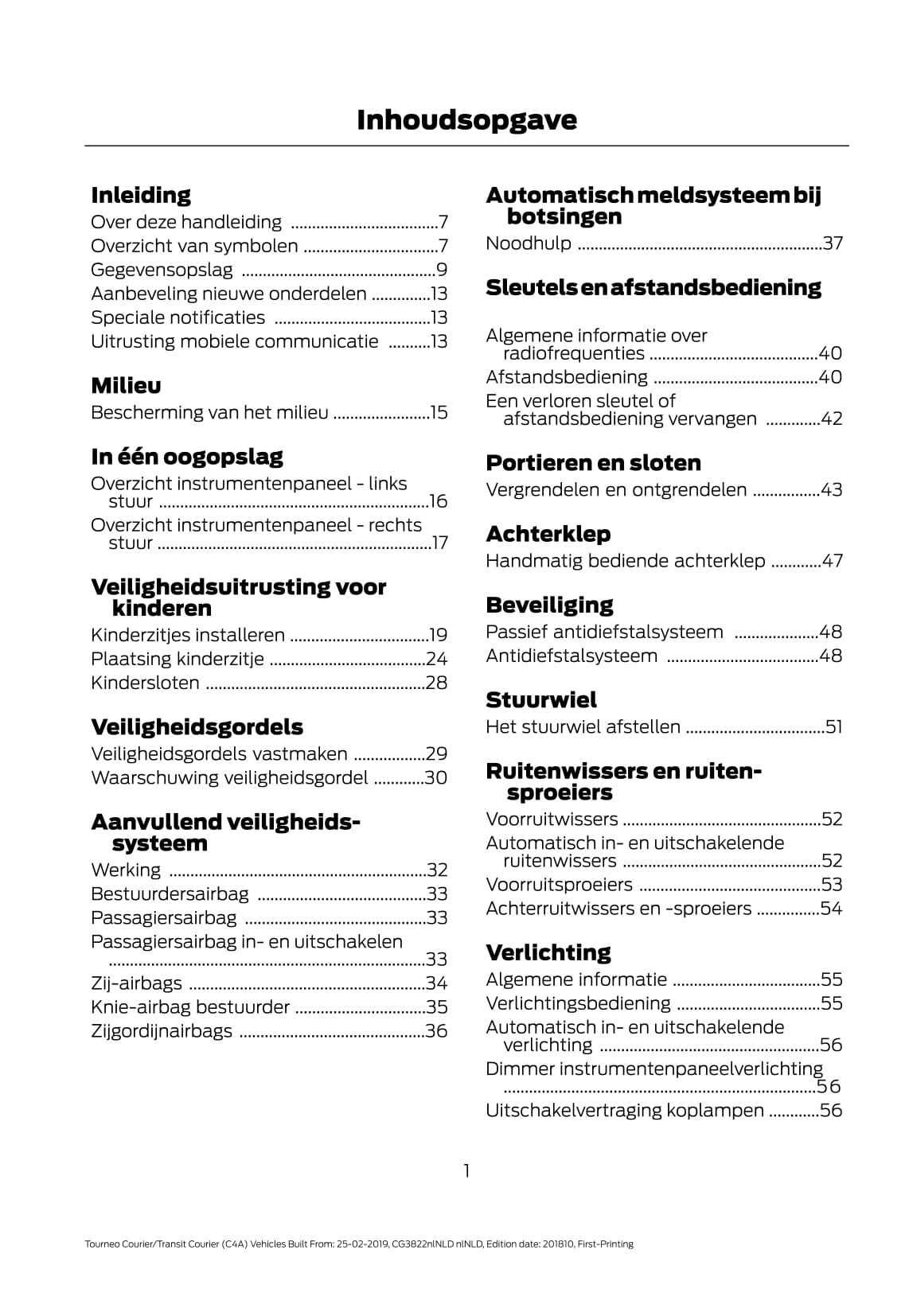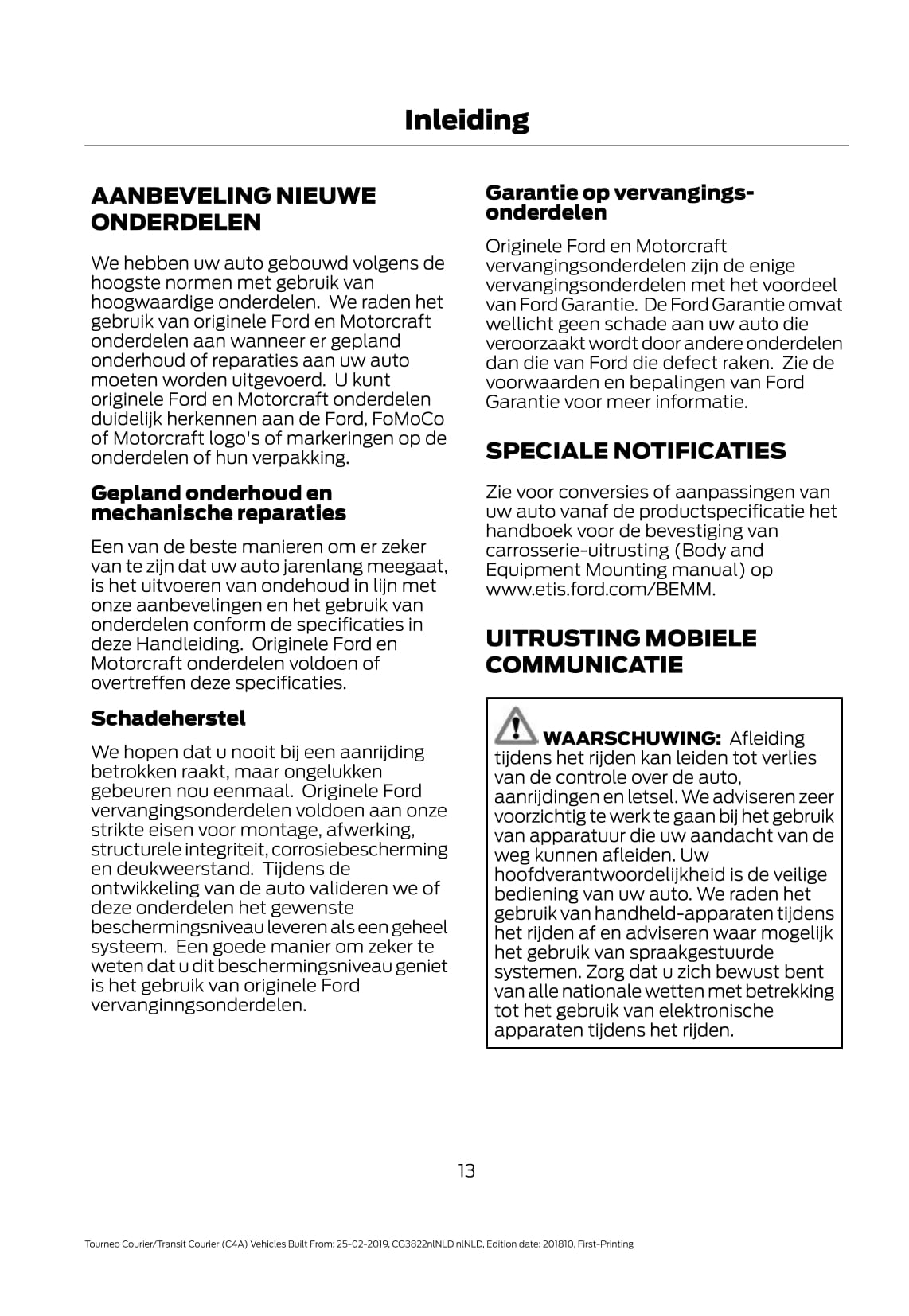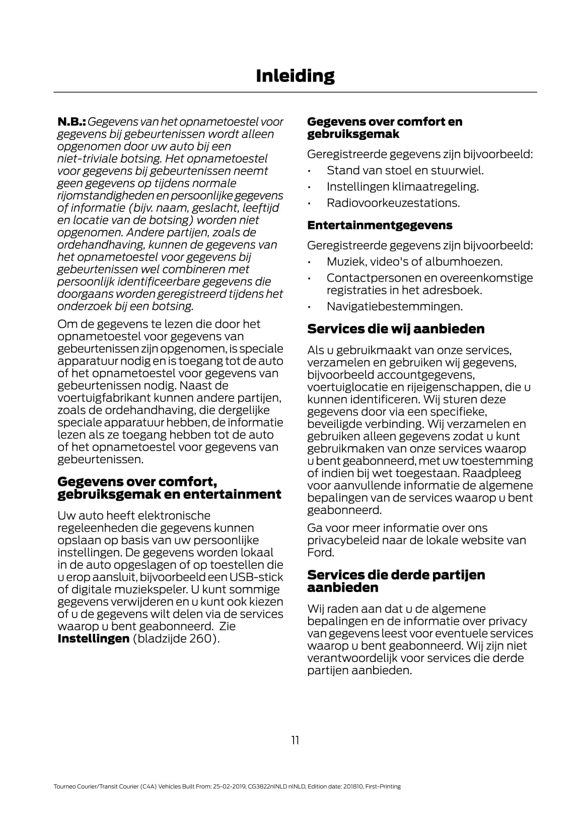 2019-2020 Ford Tourneo Courier / Transit Courier Gebruikershandleiding | Nederlands