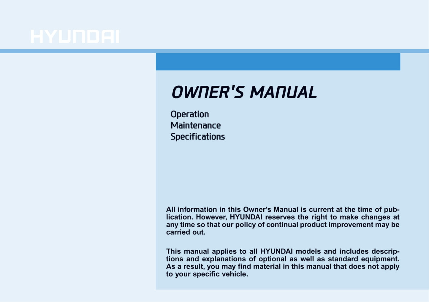 Deze 546 pagina's tellende Engelstalige autohandleiding, op aanvraag gedrukt, biedt uitgebreide instructies voor uw Hyundai Kona-voertuig.