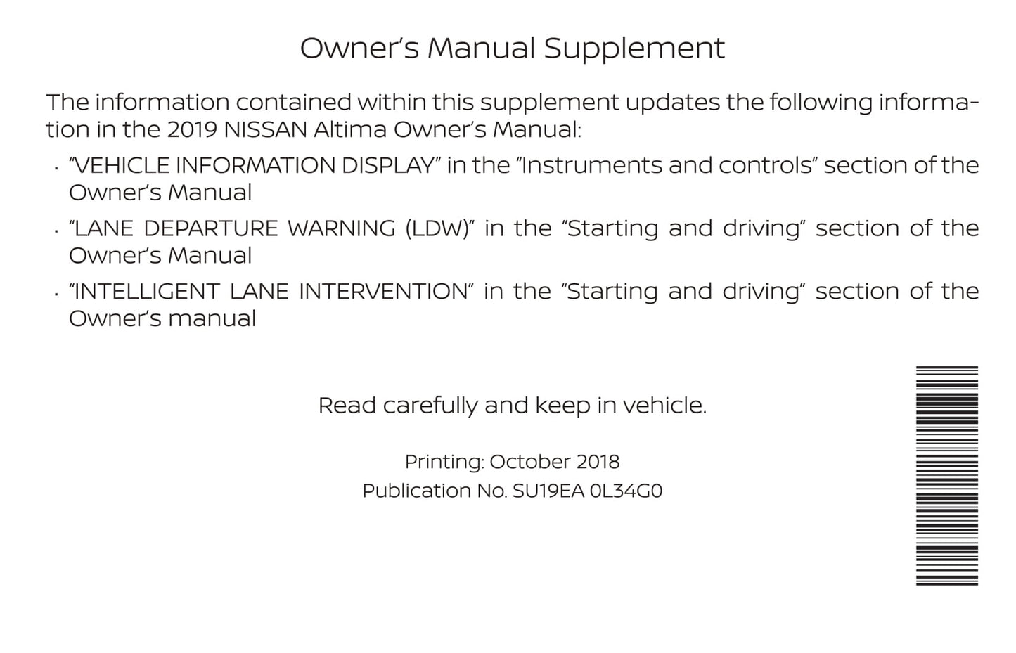 2019 Nissan Altima Sedan Gebruikershandleiding | Engels