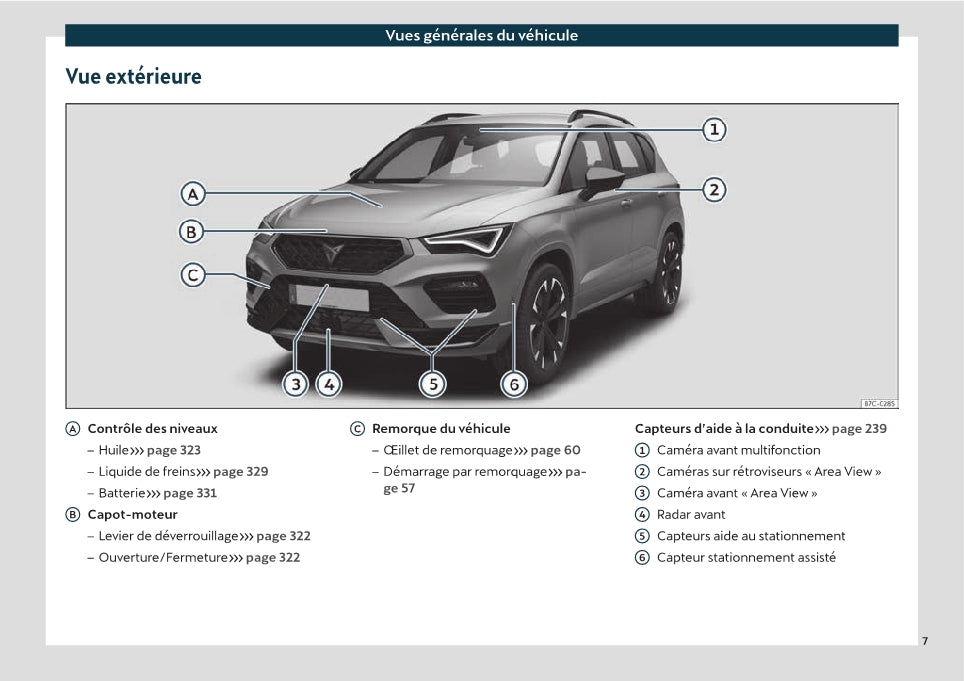 Deze 386 pagina's tellende Franstalige autohandleiding, op aanvraag gedrukt, biedt uitgebreide instructies voor uw Cupra Ateca-voertuig.