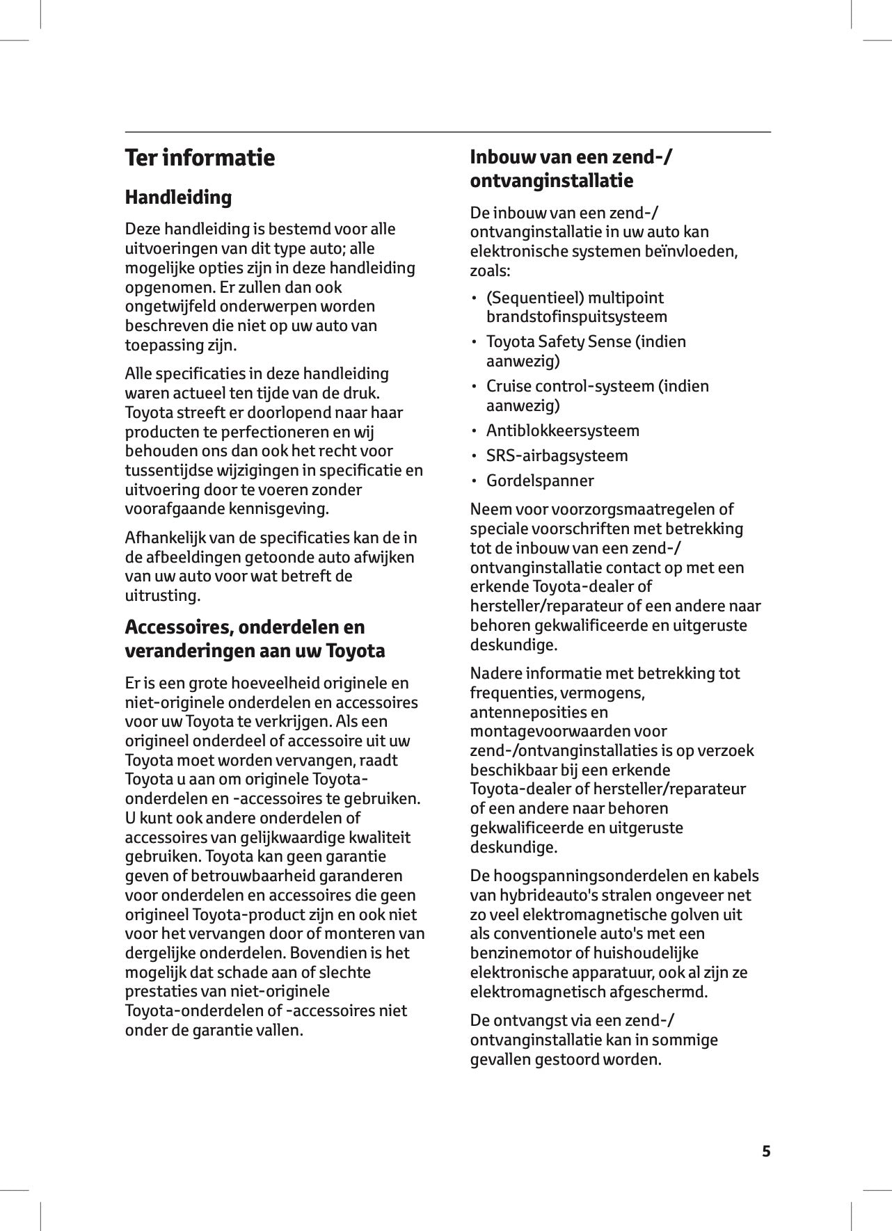 Deze 736 pagina's tellende Nederlandstalige autohandleiding, op aanvraag afgedrukt, biedt uitgebreide instructies voor uw Toyota Corolla Hybrid Hatchback/Touring Sports.