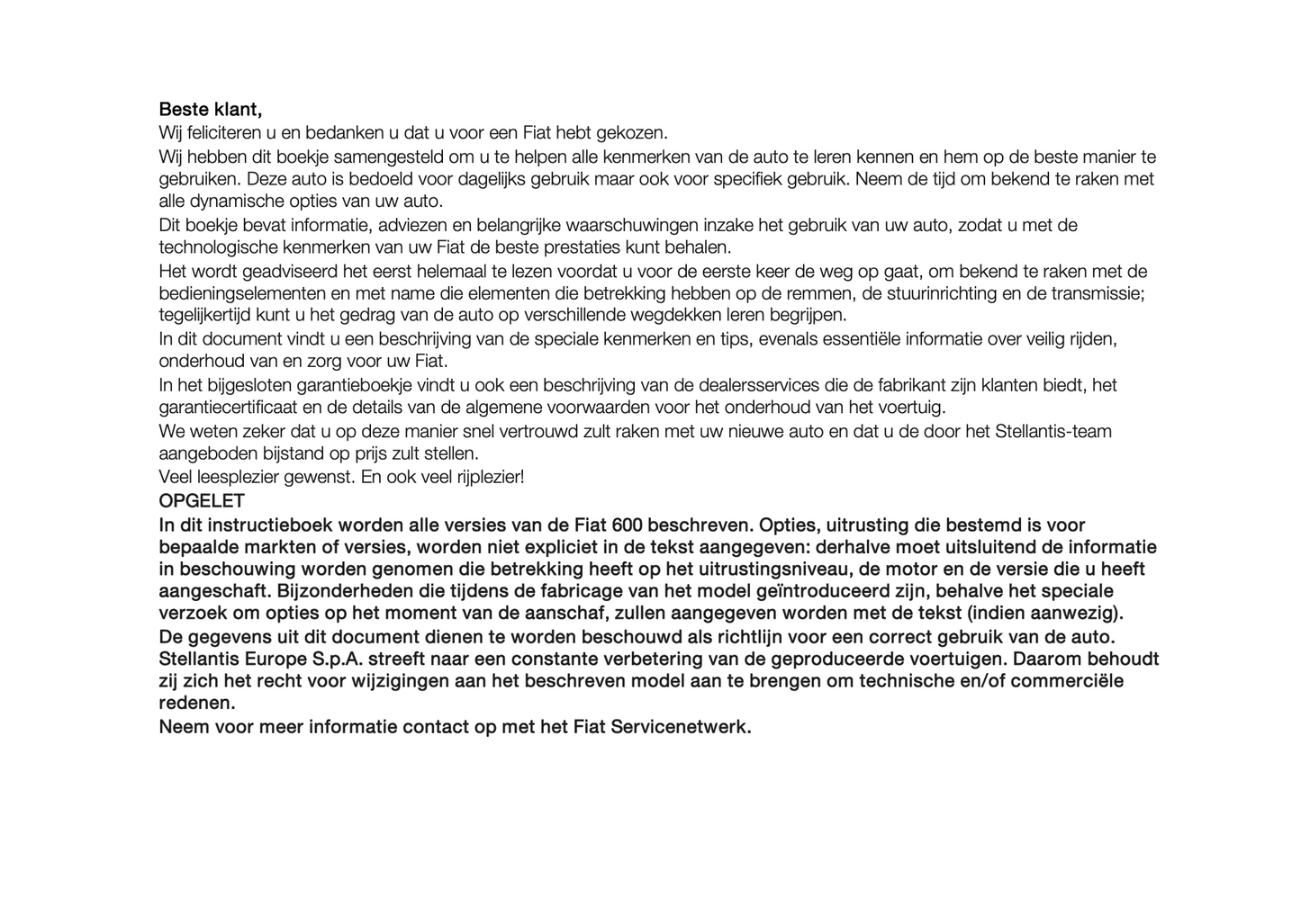 2023-2024 Fiat 600/600e Gebruikershandleiding | Nederlands