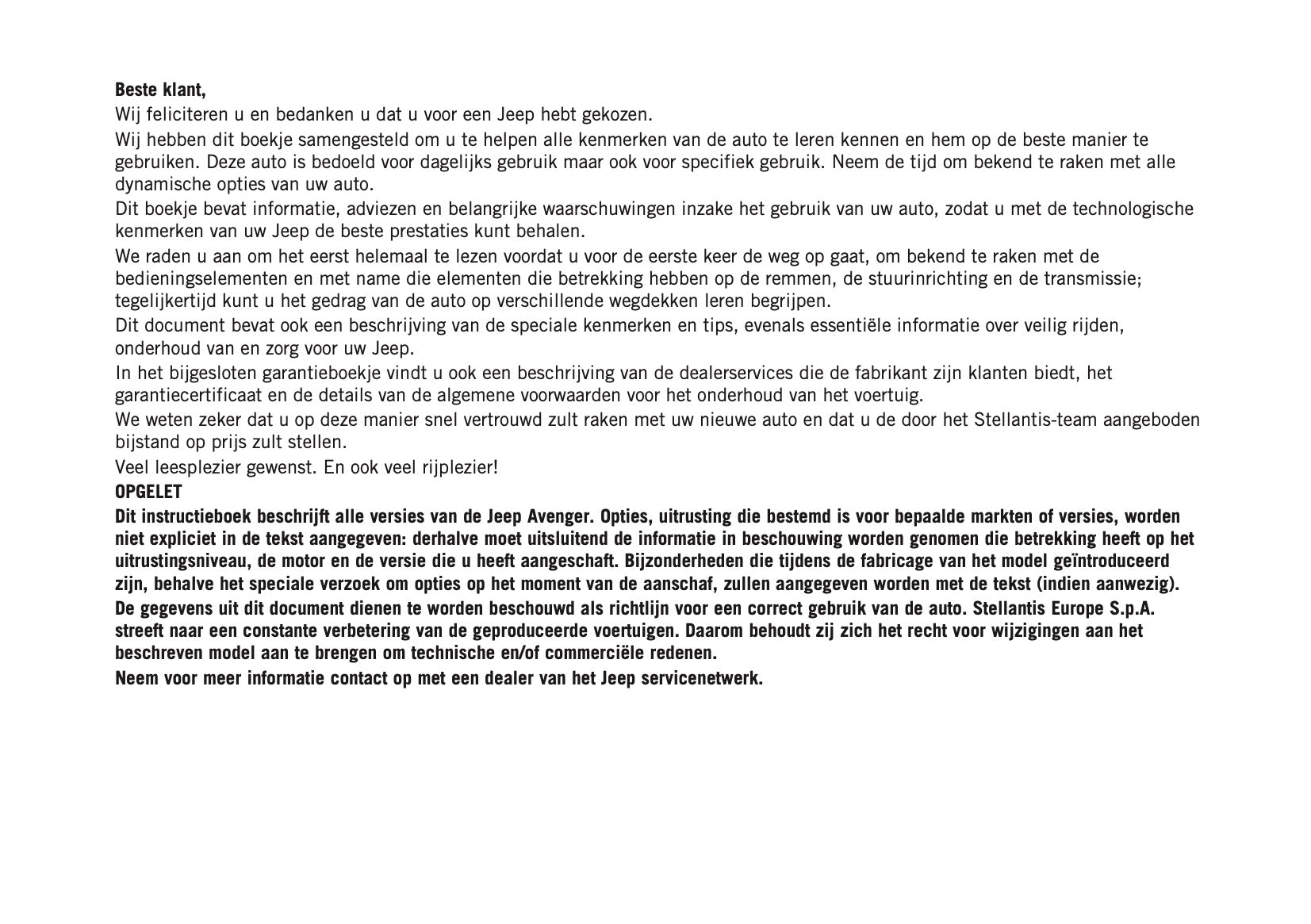 2024-2025 Jeep Avenger Gebruikershandleiding | Nederlands