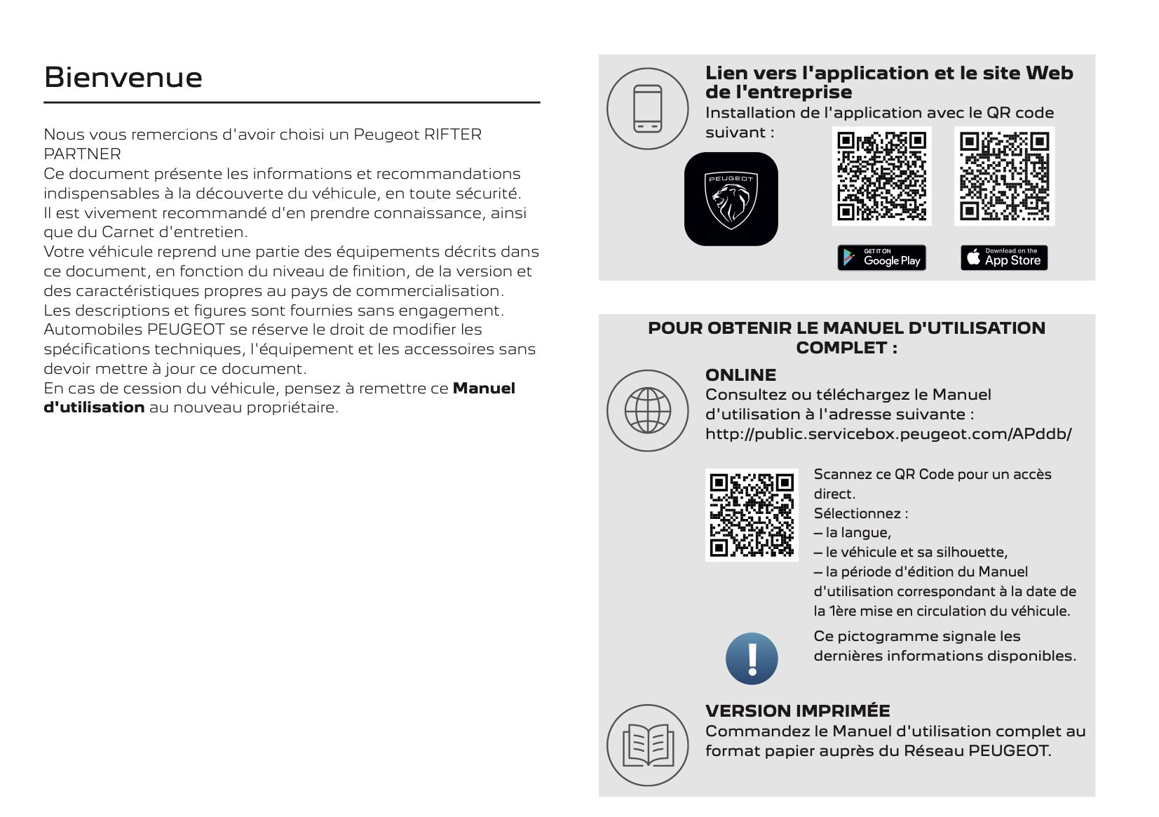 2025 Peugeot Rifter/Partner Owner's Manual | French