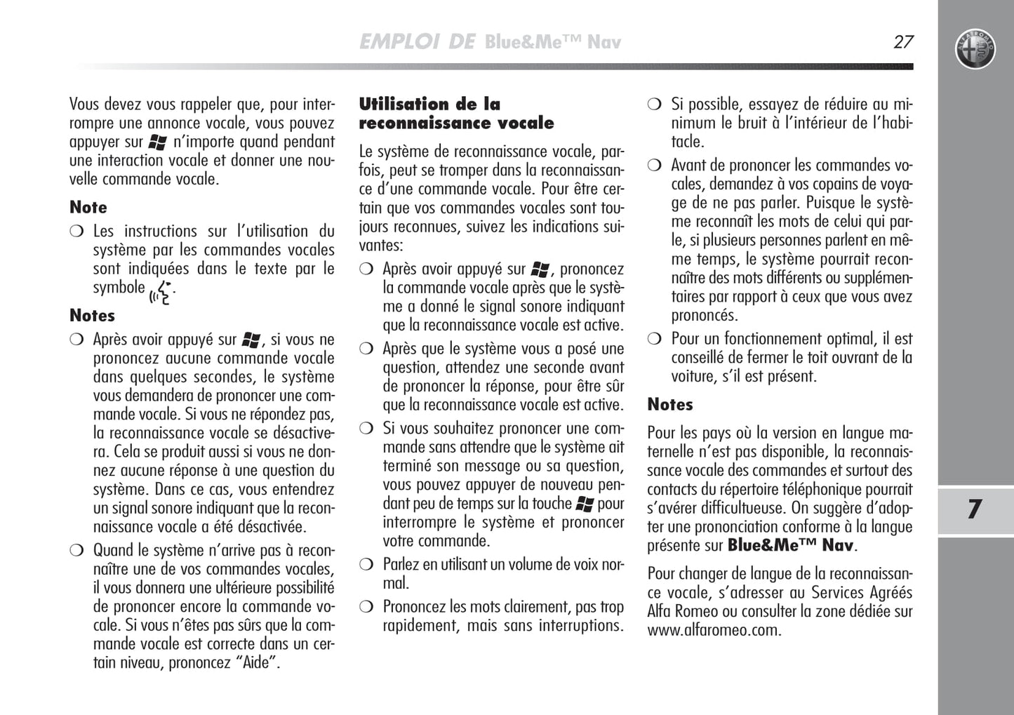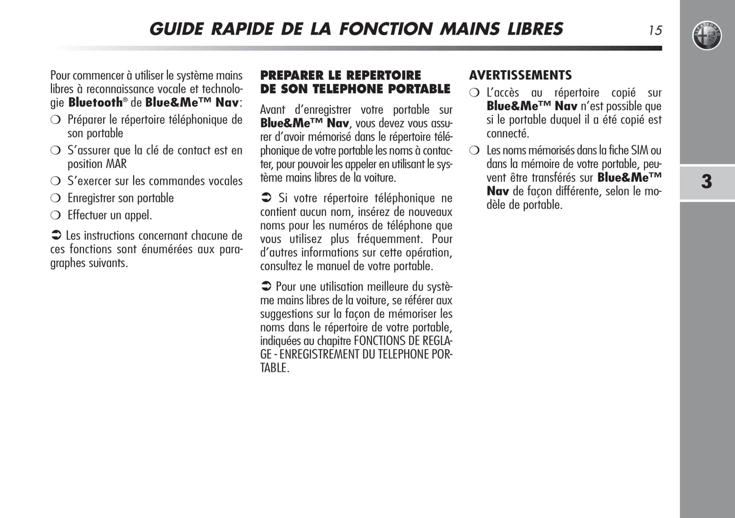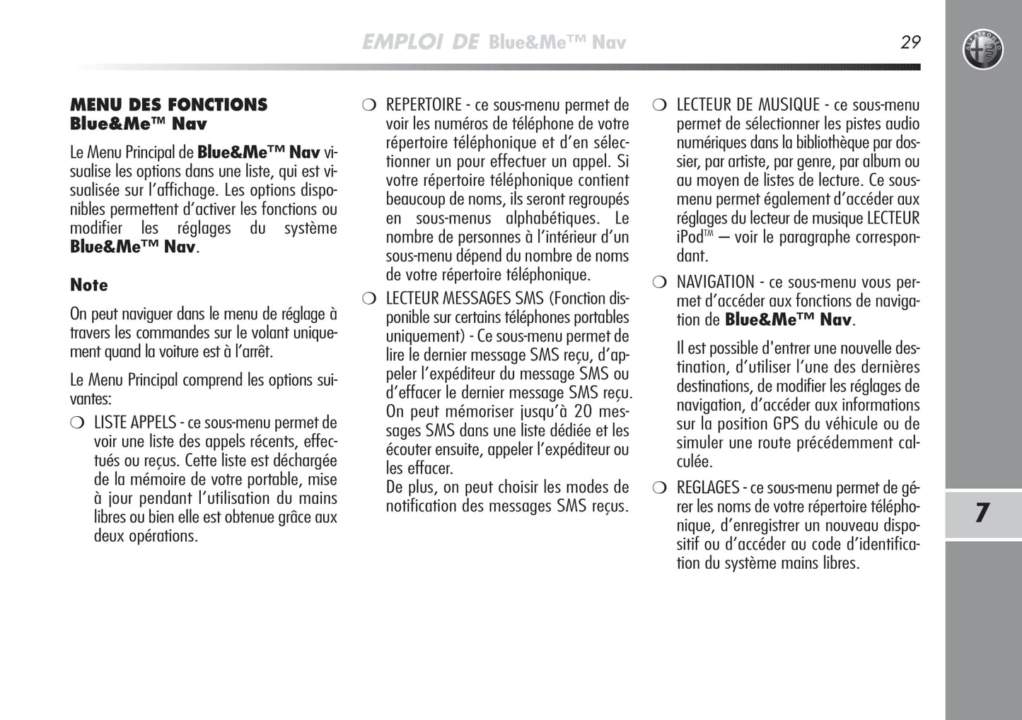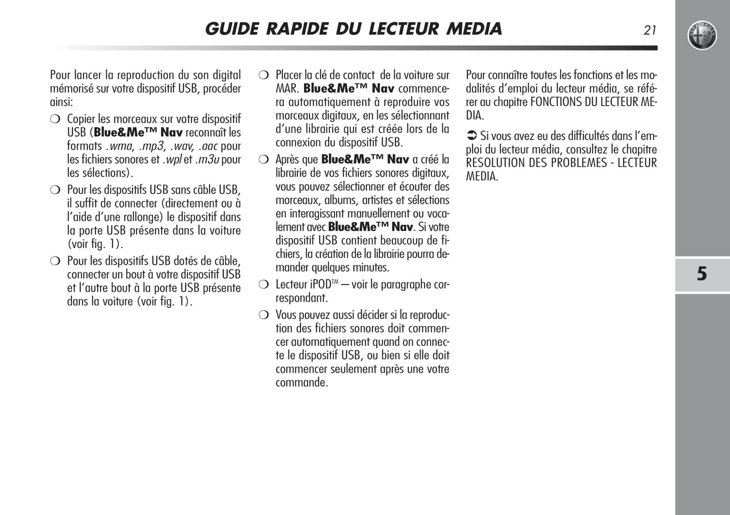 Alfa Romeo MiTo Blue&Me Nav Guide d'utilisation 2008 - 2014