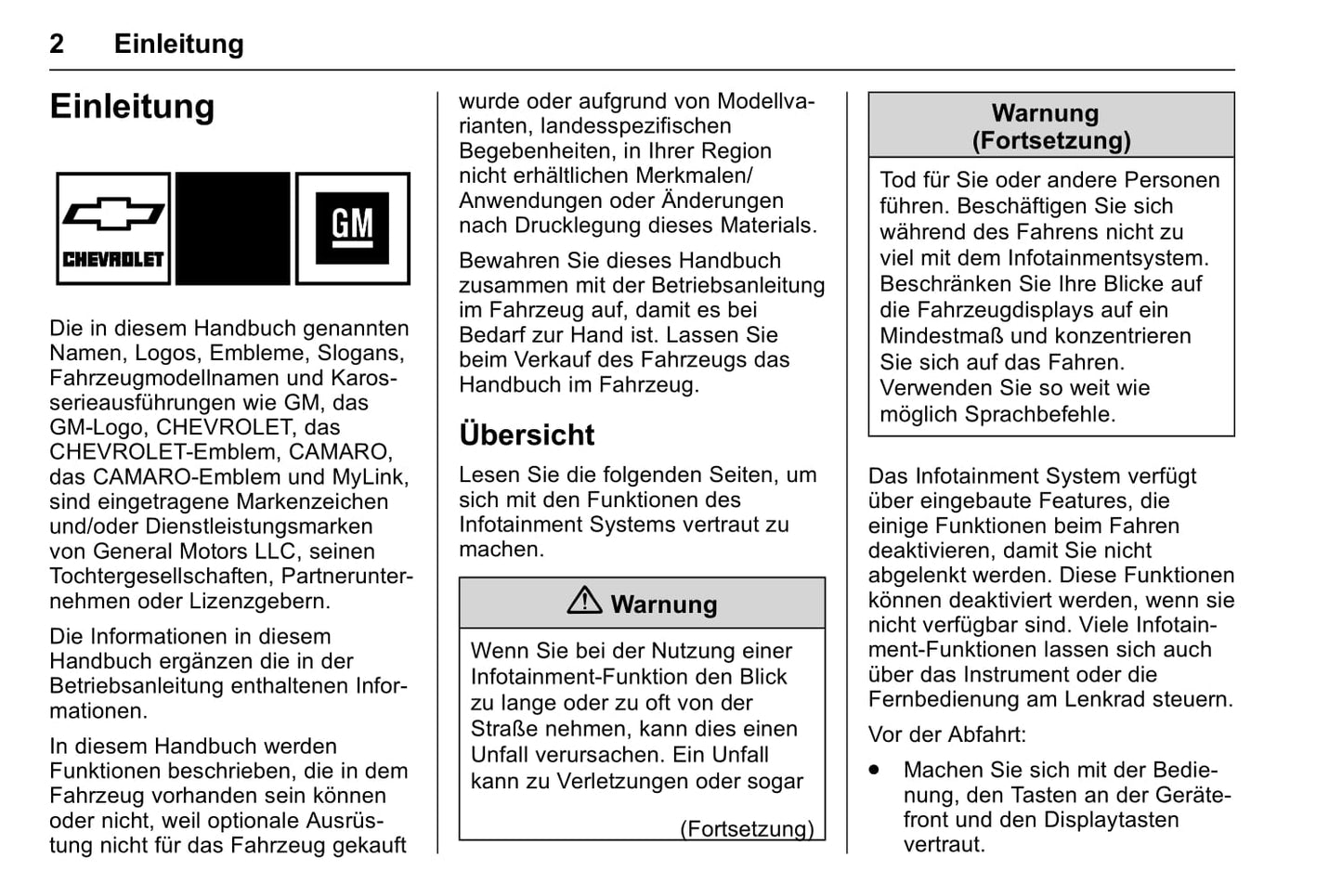 Chevrolet Camaro Infotainment System Bedienungsanleitung 2017