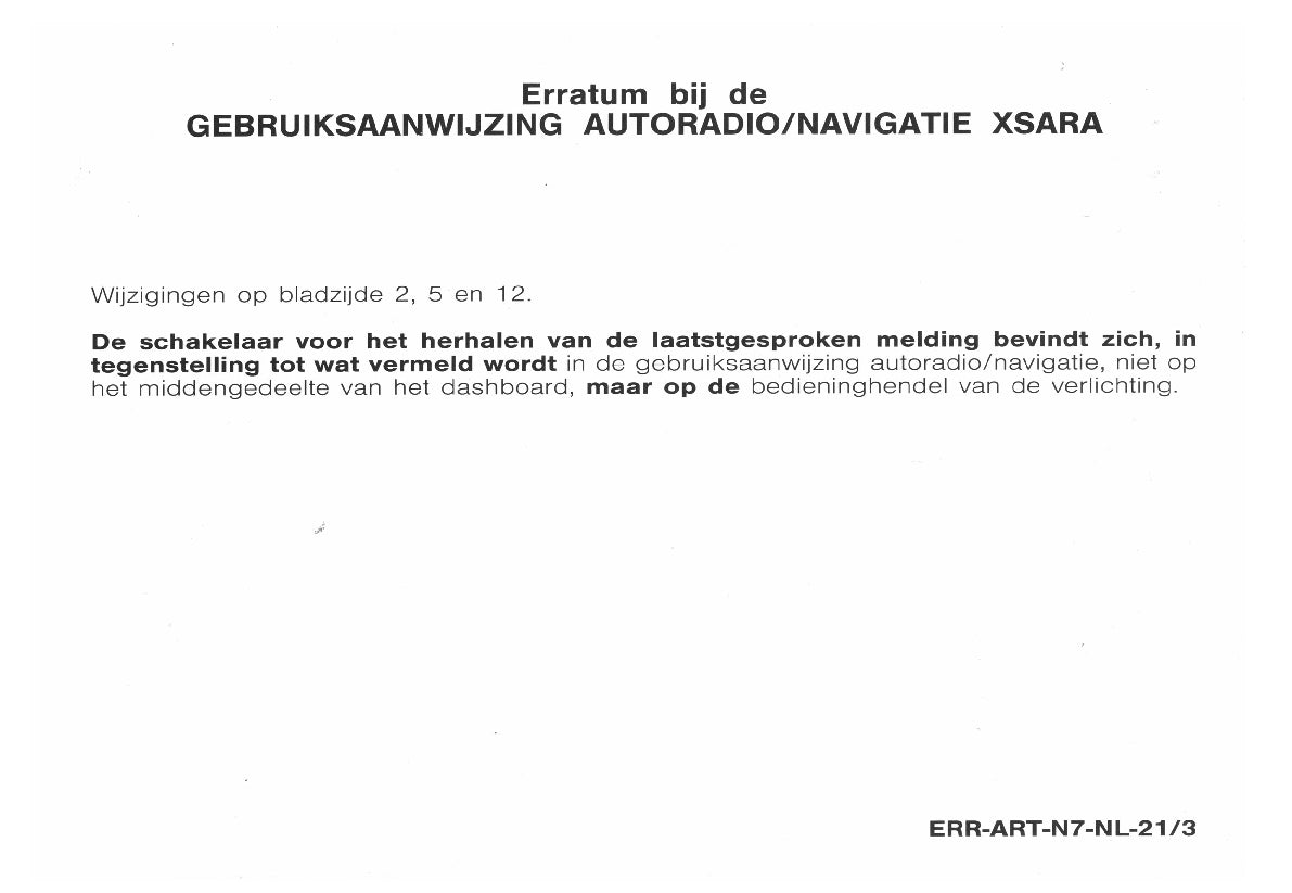 Citroën Xsara Navigatie, Boordcomputer en Autoradio Handleiding 2003