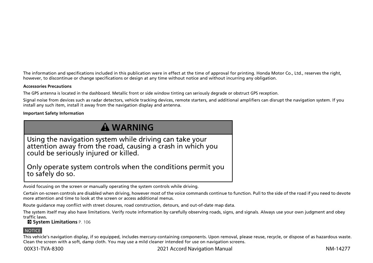 Honda Accord Navigation Gebruikershandleiding 2021