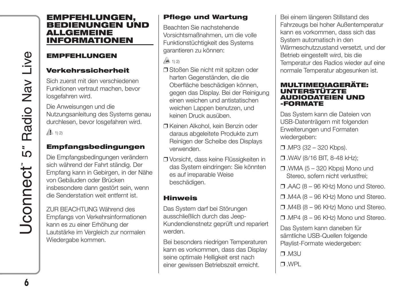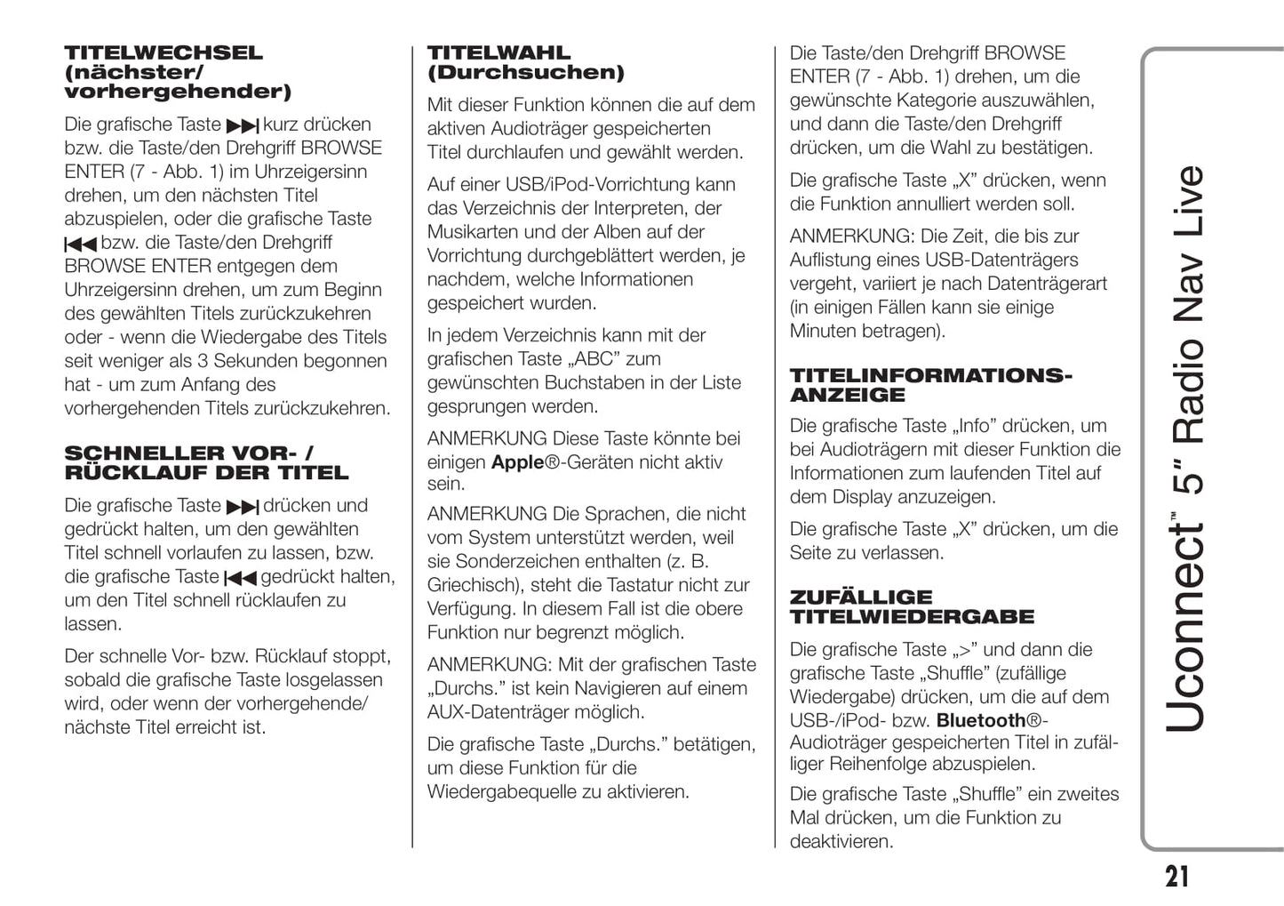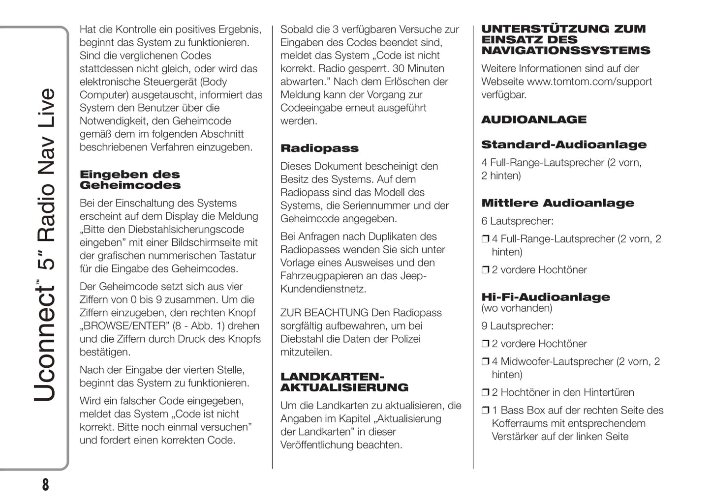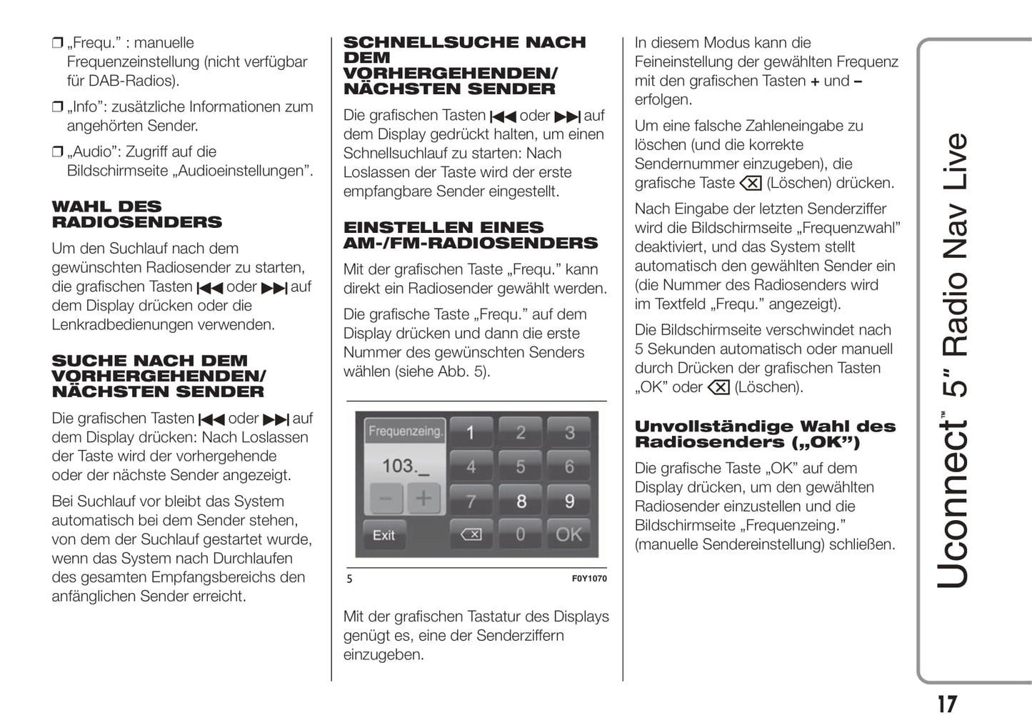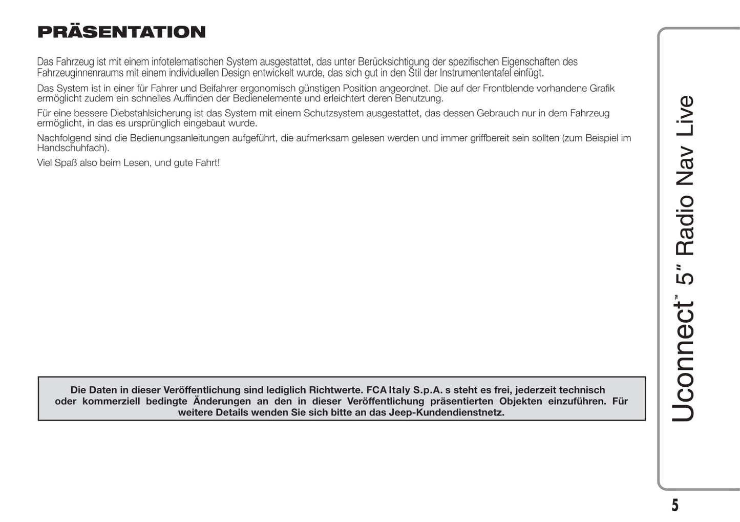 Jeep Renegade Uconnect 5 Radio Nav Live Bedienungsanleitung 2015 - 2017