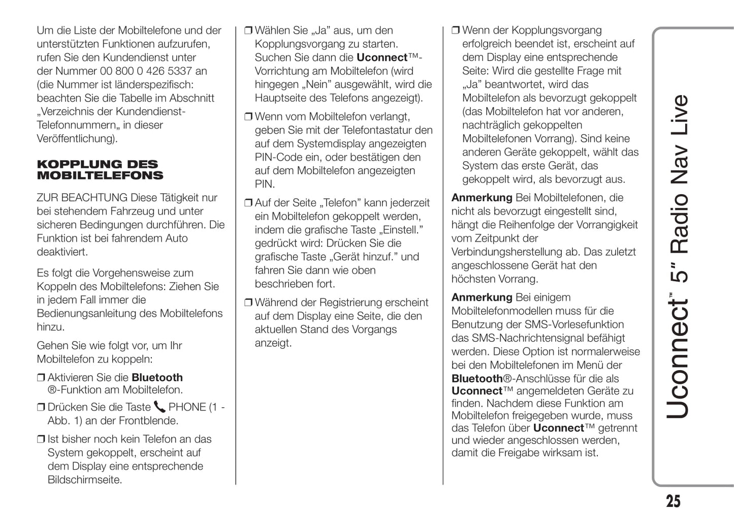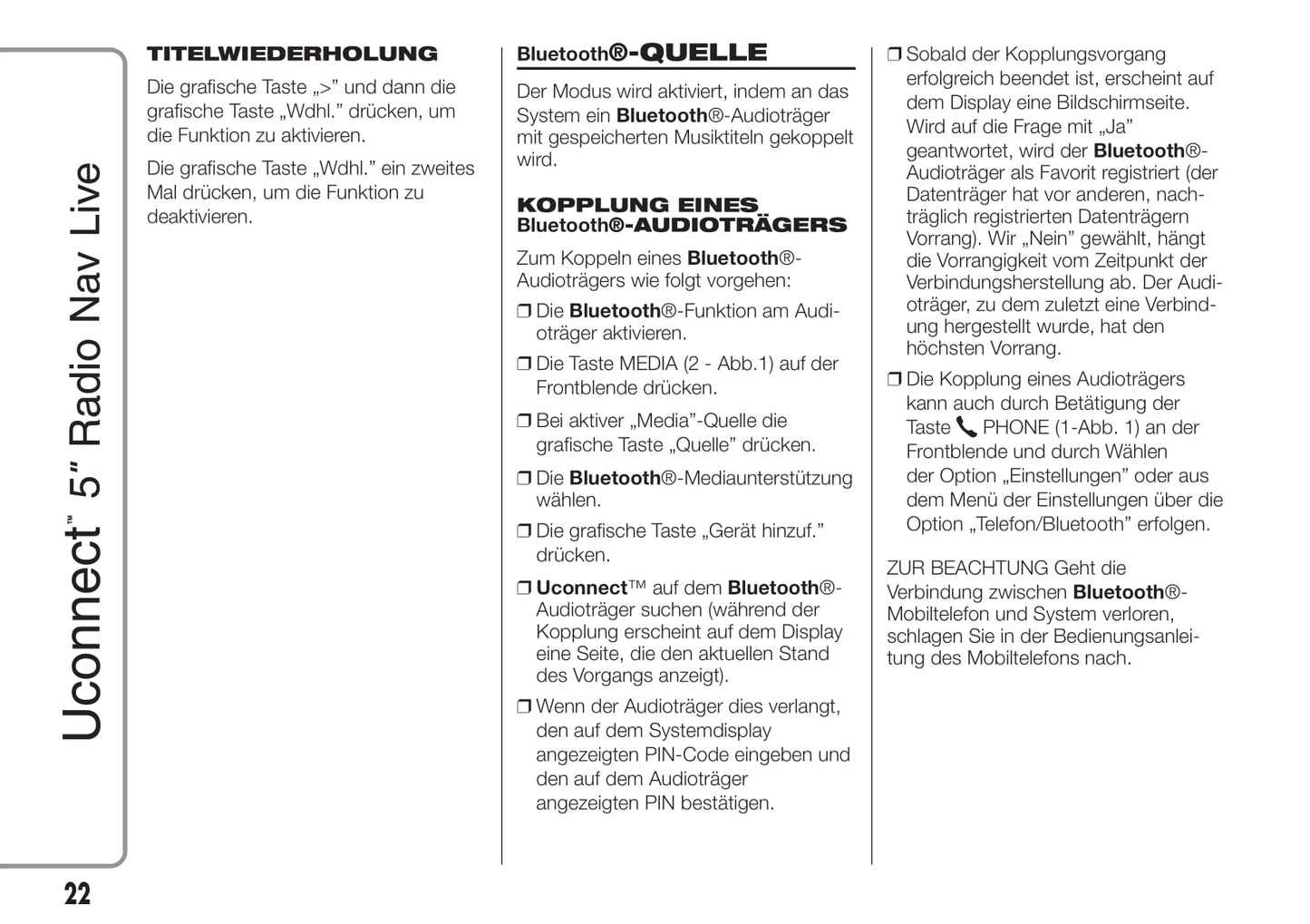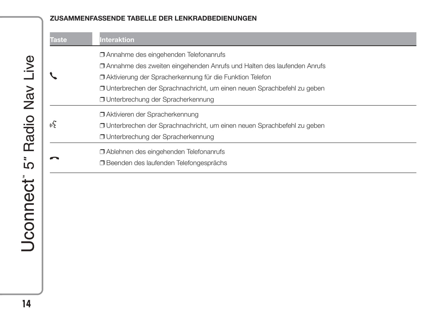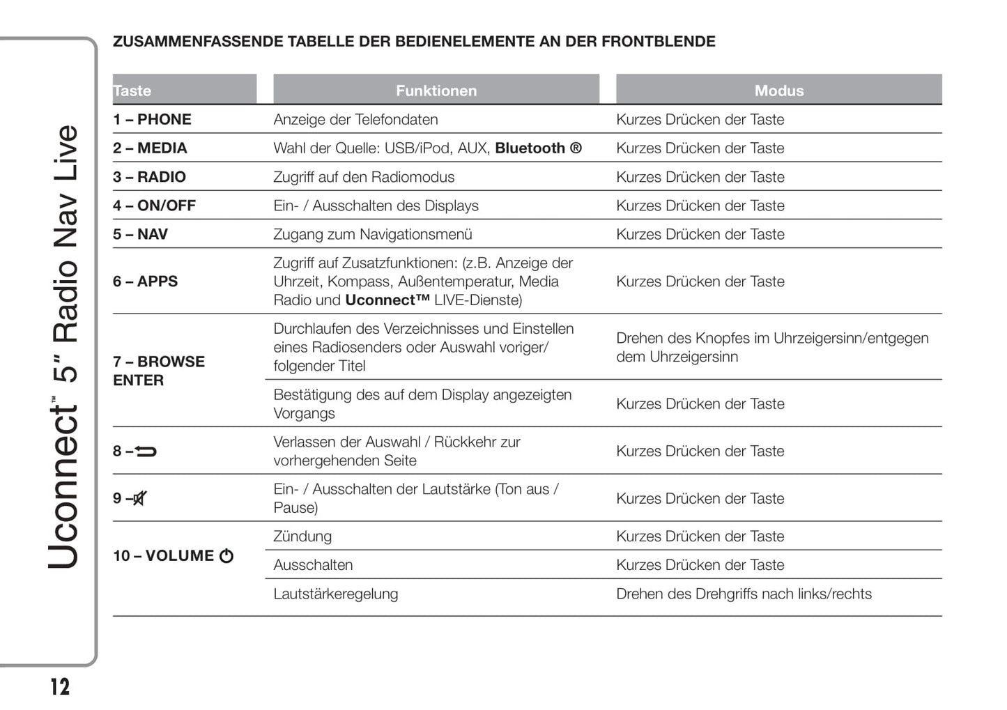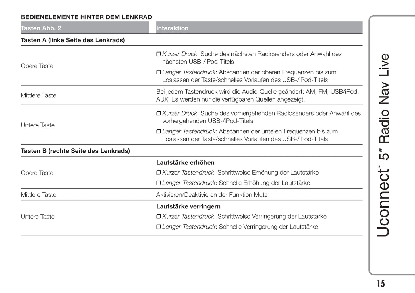 Jeep Renegade Uconnect 5 Radio Nav Live Bedienungsanleitung 2015 - 2017