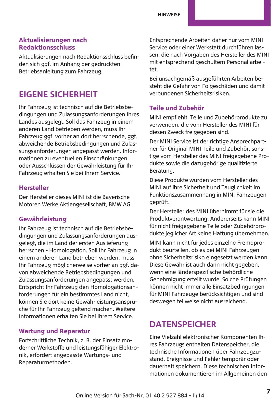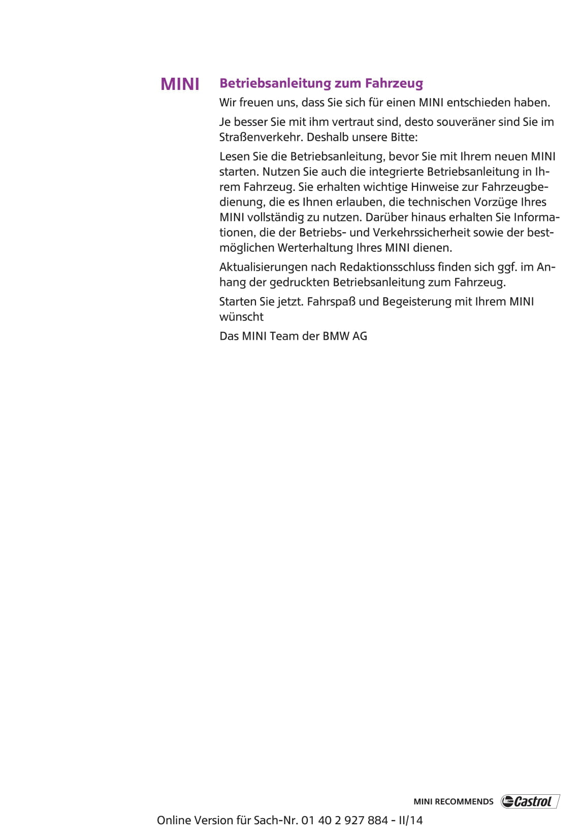 Deze 220 pagina's tellende Duitstalige autohandleiding, op aanvraag gedrukt, biedt uitgebreide instructies voor uw mini-mini-voertuig.